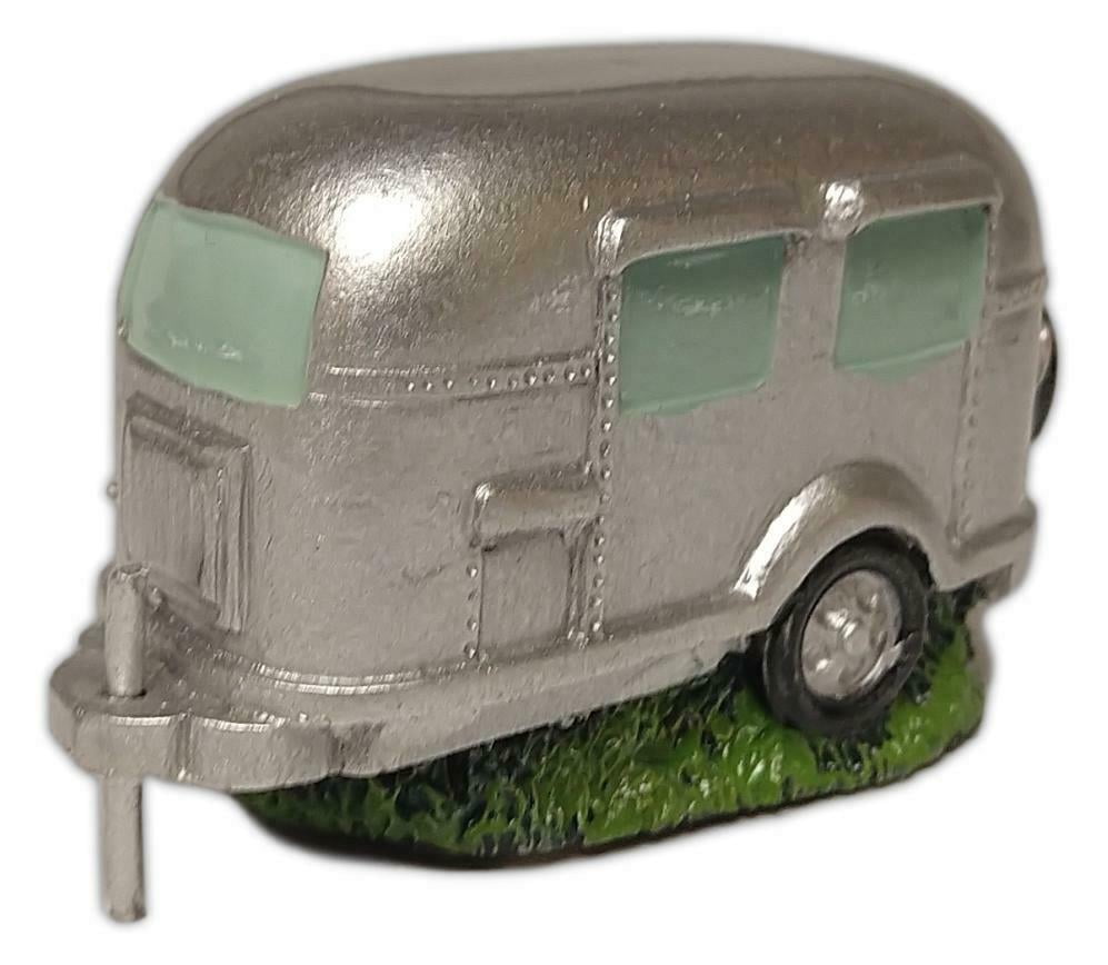 Miniature SILVER CAMPER TRAILER Figurine, 2.25′ Long, by Wilcor