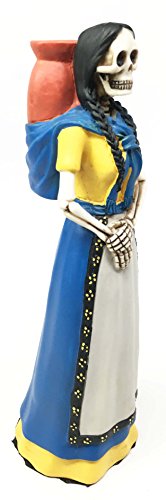 Day of The Dead Senorita Mexican Girl With Jarritos Pot On Her Back Figurine For Home Decor Collectible Dias De Los Muertos Decoration Gift