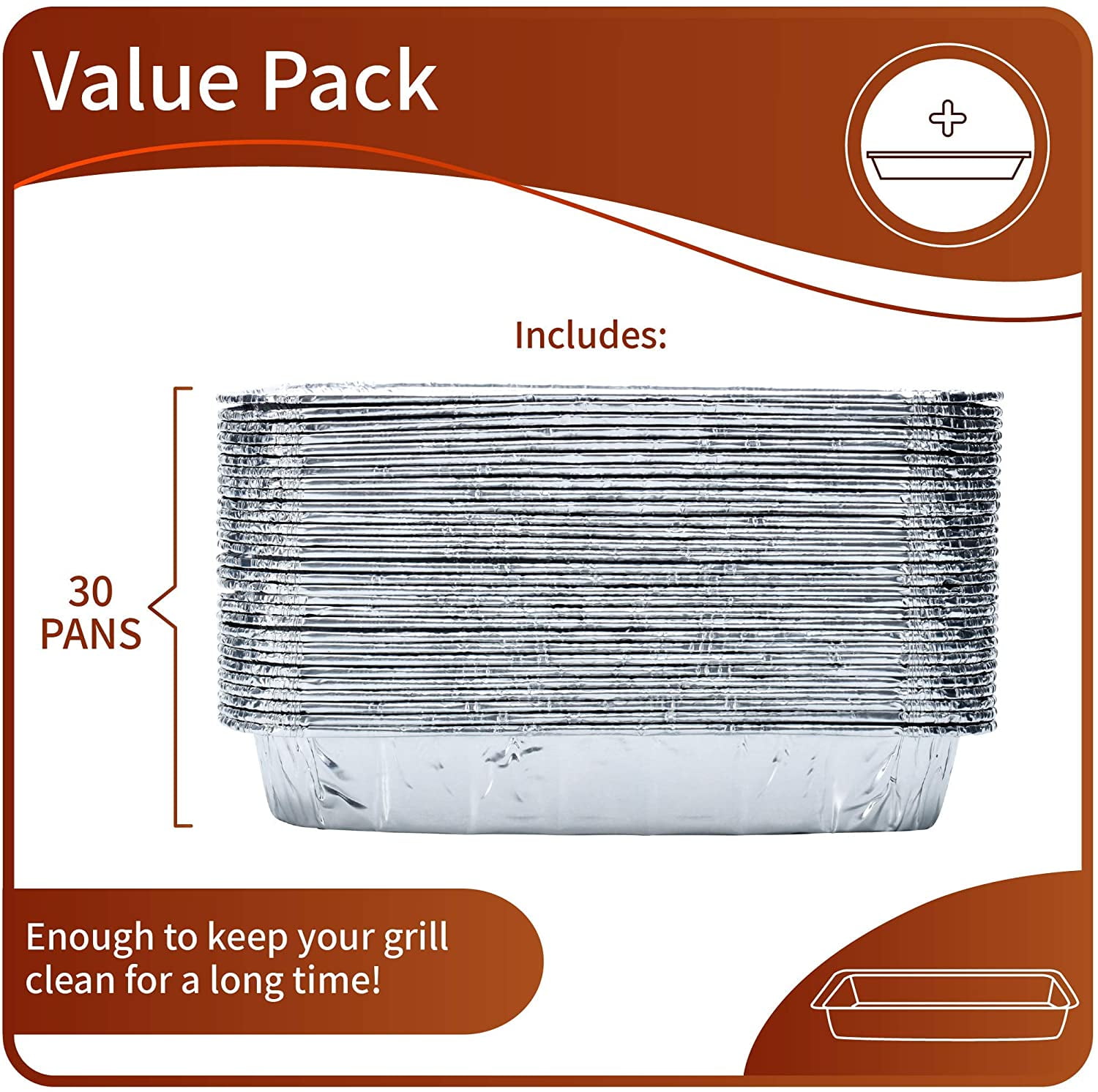 (30-Pack) Weber Grills Compatible Drip Pans, Bulk Package, Aluminum Foil BBQ Grease Pans, 7.5′ x 5′