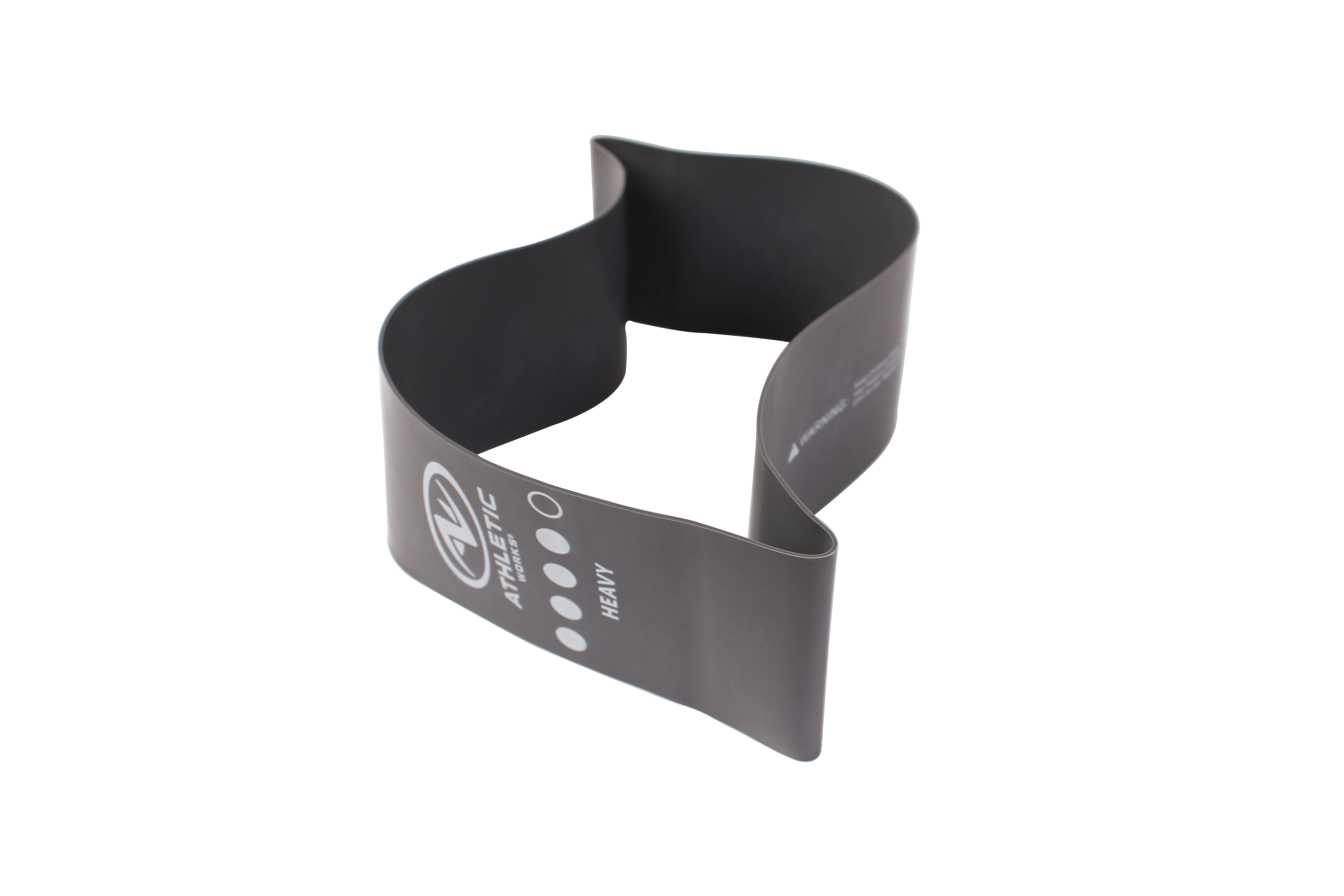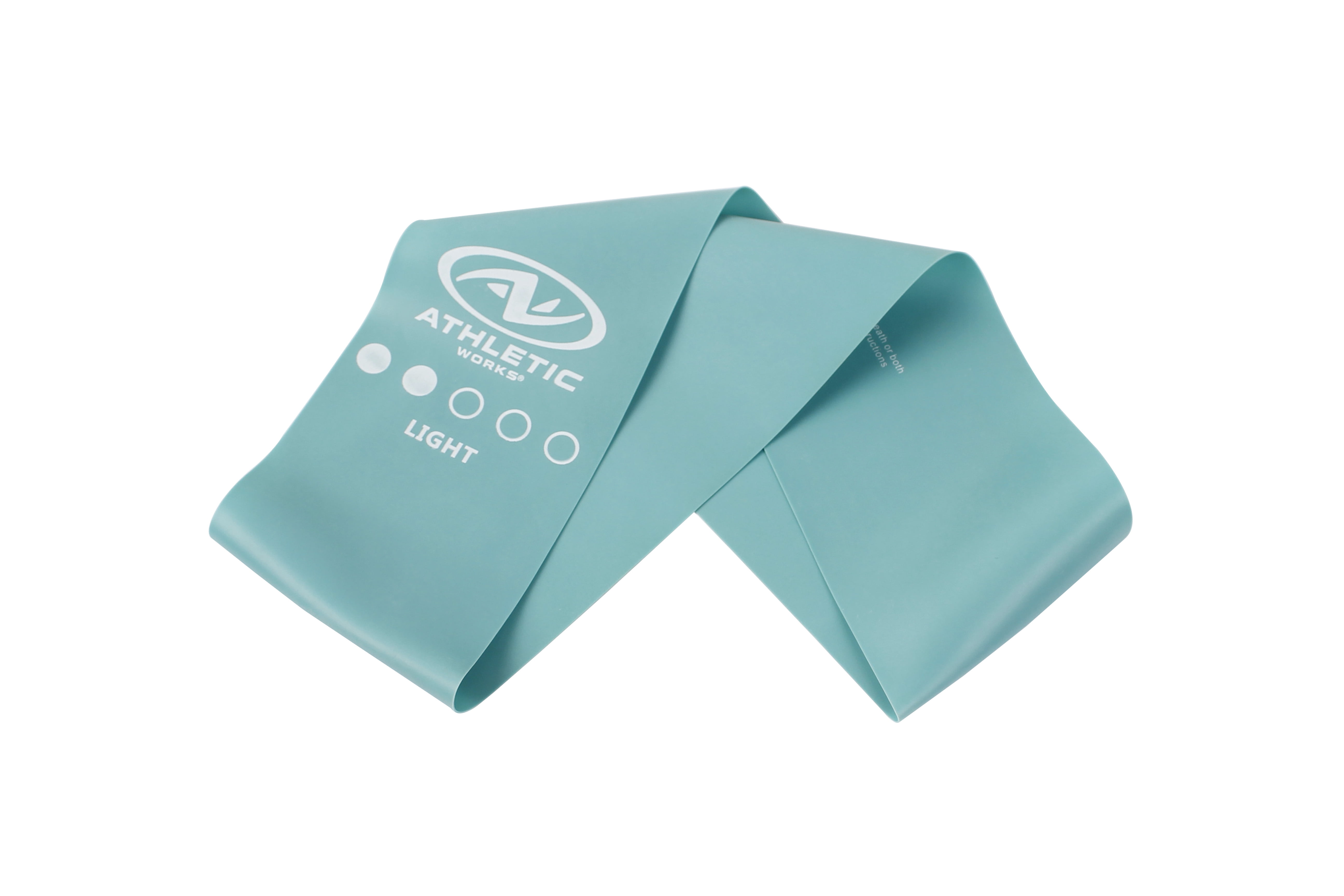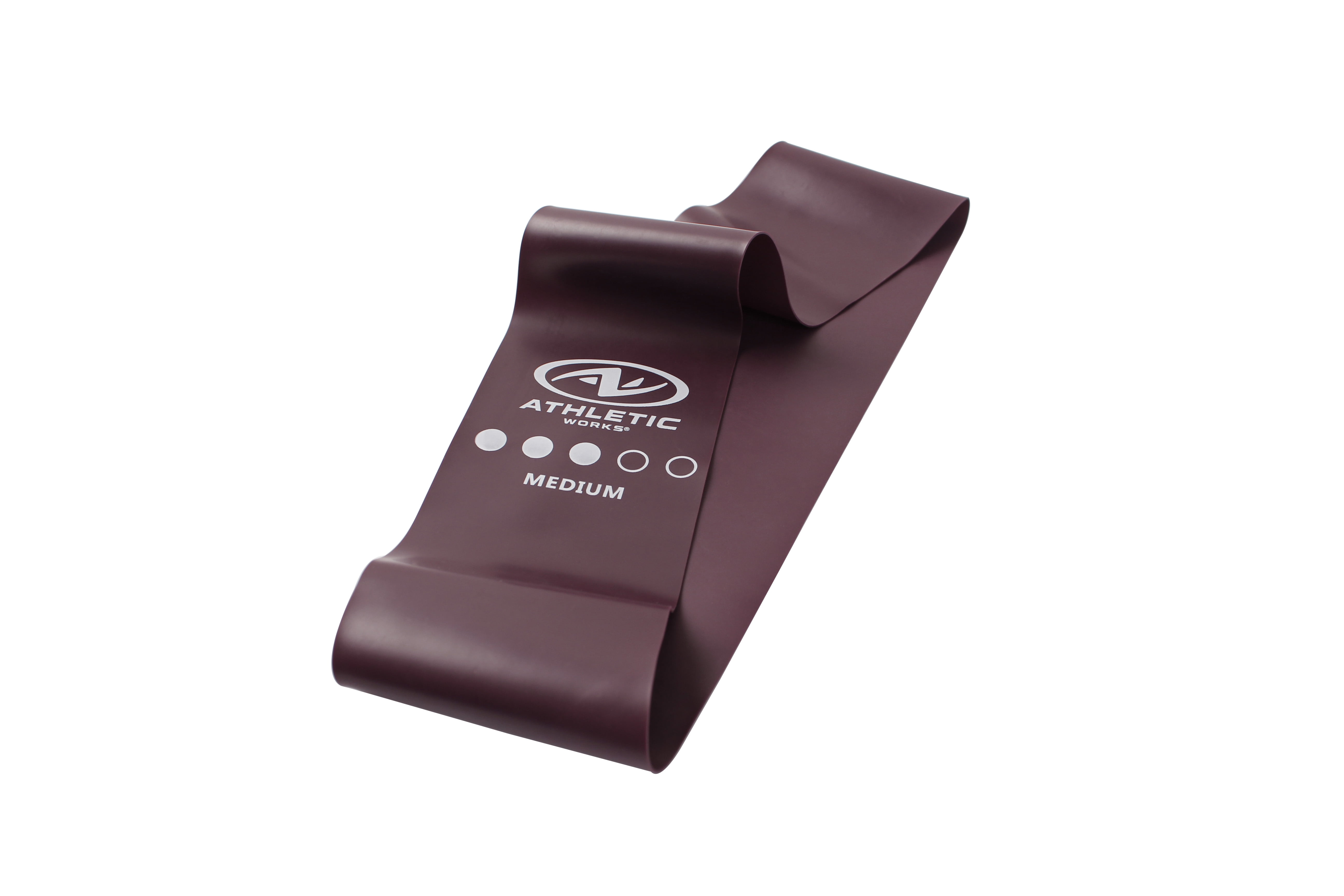 Athletic works resistance loop band. Light, medium, heavy 3 different powers with different colors. Band size: Light power 12in L x 3in W teal color, Medium power: 12in L x 3in W purple color, Heavy power: 12in L x 3in W dark gray color. Start with light and then move up to medium bands, Heavy band is for a greater workout challenge. This loop band set fits perfectly in your backpack, gym bag and it is yoga, Pilates, physical therapy or any fitness workout. Convenient to take with for travel. So you can focus on toning and strengthening your abs, arms, shoulders, legs and butt, hips, thighs, ankles and booty. These loop bands.