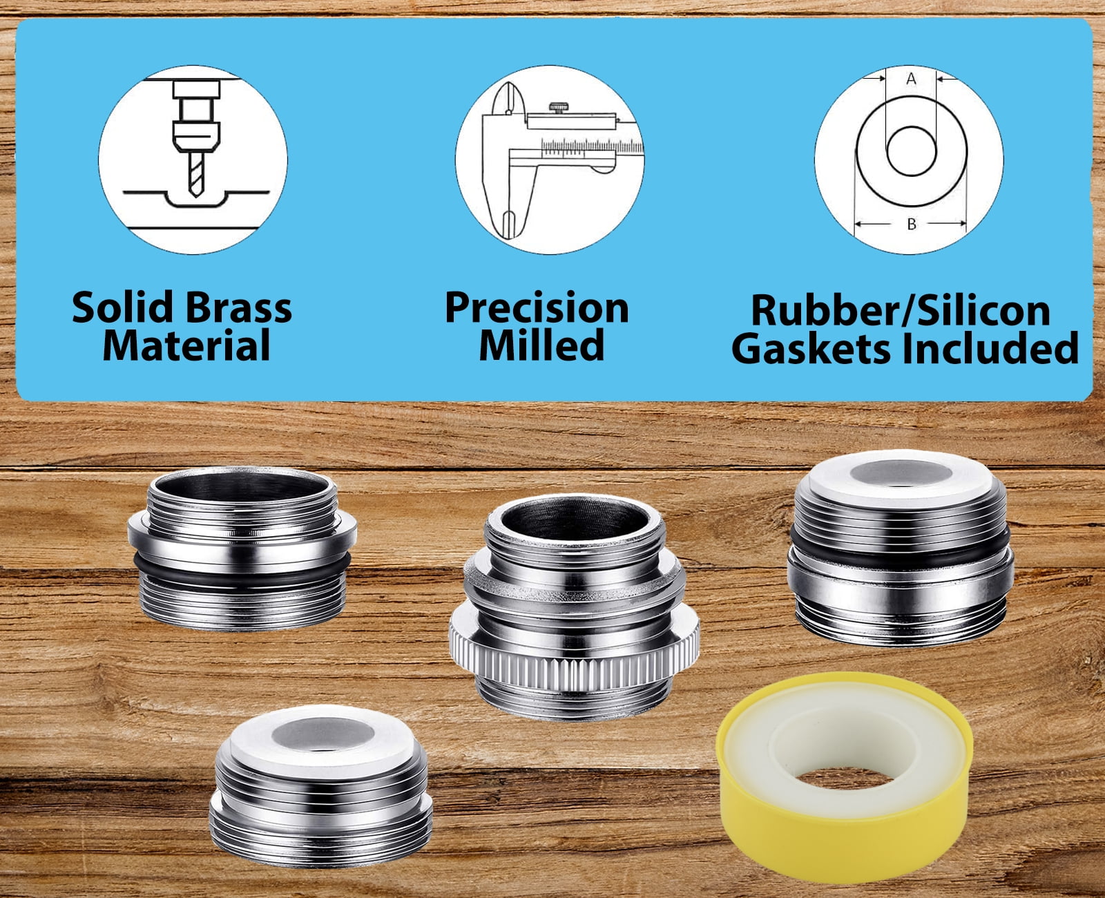 HIGH-GRADE FAUCET ADAPTER – Our 5pcs faucet adapters set has been made using the highest quality solid brass available in the market. With every purchase that you make you get a top-quality faucet adapter.