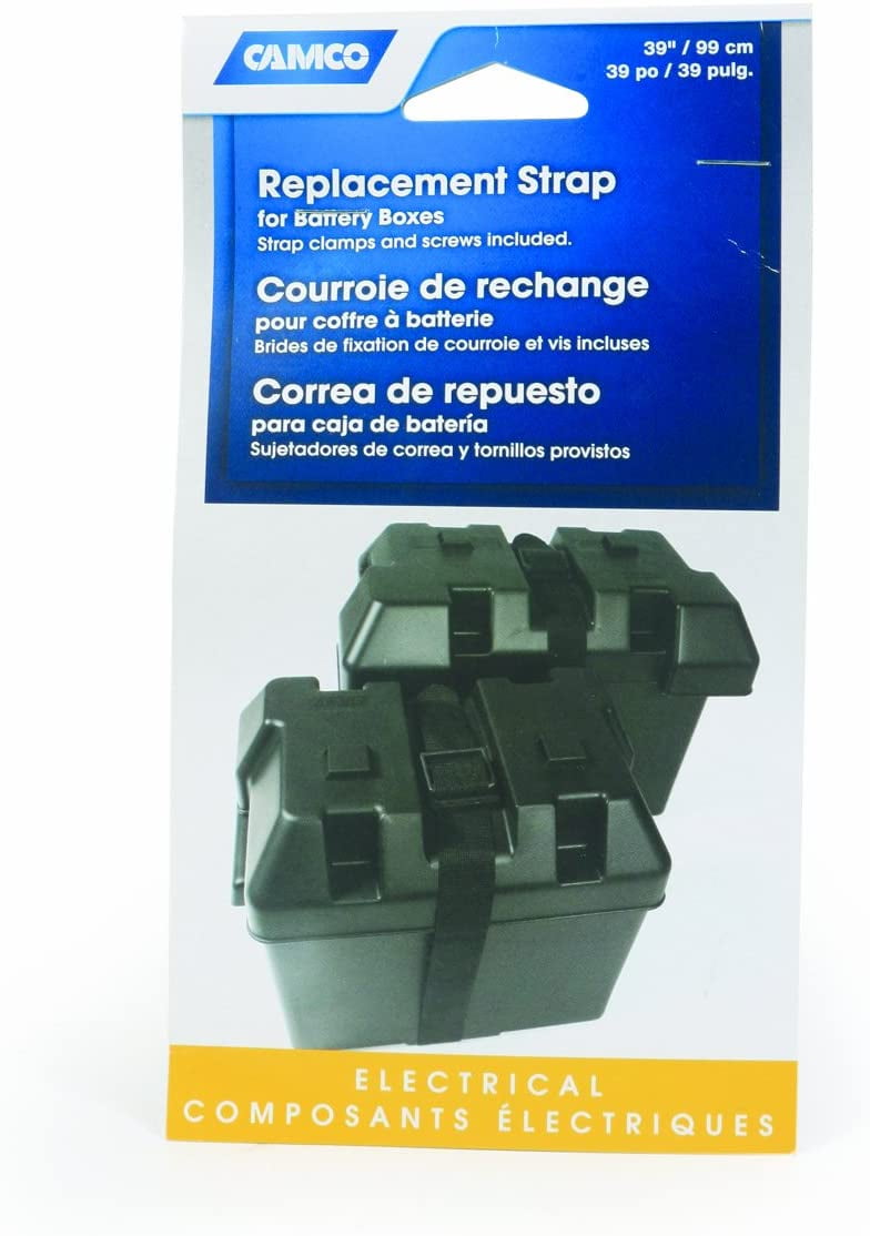1-1/2" wide x 39" longIncludes hardware to attach to battery boxMade of woven polypropyleneHeavy-duty and durableEasy to install See more product details