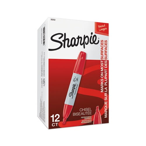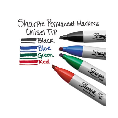 The permanent marker with a split personality, Sharpie Chisel Tip Permanent Markers have a versatile tip that makes both broad and fine strokes–so you can express yourself any way you want. Bold to the max and permanent to the core, Sharpie Permanent Markers inspire you to transform ordinary surfaces into passionately creative statements. Made to write practically everywhere, vivid Sharpie markers eliminate dull and boring. Sharpie has iconic ink that dries quickly and resists both water and fading. While pale imitations wither away, Sharpie markers make creations that endure. Marker Ink Type: Permanent Marker Tip Type: Chisel Marker Tip Size text: Medium Marker Tip Size numeric: 5.3 mm.