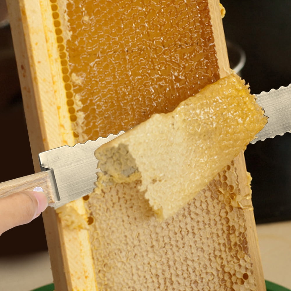1x Cold Uncapping Knife, Stainless Steel 11 inch Serrated Blade Wax Scraper Tool with Wooden Handle for Honey Harvesting Extracting Bee Keeping