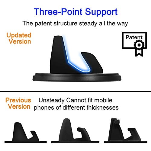 About SRUNP Car Dashboard Phone Mount – SRUNP Cell Phone Holder for Car with Three-Point Support, 360 Degree Rotatable Washable Car Phone Mount Compatible with Smartphones and GPS Devices Why Choosing Us? · Adopts 3-point support design for maximum stability and security · Made of anti-slip and scratch-resistant material · Comes with 360 degree rotating base for any angle adjustment · Can hold phones both vertically and horizontally · Designed with high tech adhesive which holds tightly to dashboard · 30-day money back service for quality insurance Specification Item: Cell Phone Holder for Car Dashboard Material: Soft Silicone Rubber Color: Black Weight: 1.9oz Chassis Diameter: 3inch Wide Compatibility The car phone mount is compatible with most phones including iPhone 11/11 Pro/11 Pro Max/ XR/ XS/ XS Max/ X/8/8 Plus/7/7 plus/ 6s /6s plus/6/6 plus/5Se/5s/5/4s, Samsung galaxy Note 8 /9/10 /10 pro, S 8 /9 /10, S 8 plus / 9 plus /10 plus, S 7 Edge, Nexus, Pixel, LG, Sony, HTC, IPAD, Huawei, Motorola and other GPS device with thickness less than 0.47inch Package Includes 1 x Car Phone Holder for Dashboard[PATENT DESIGN] The car dashboard phone mount adopts the principle of triangular to ensure stability, steadily supporting your cell phone at three points without shaking or slipping. Soft silicone rubber material is anti-slip and protects your phone from scratches. | [Convenient Design]The cell phone car holder comes with a base which can be rotated 360 degrees, which makes it possible to adjust angles as you wish as well as to ensure a safe and comfortable driving experience regardless of navigating or listening to music.The phone dash mount for car can hold your phone in both horizontal and vertical direction, which makes it easy for you to either watch movies or charge phones on the way. | [STRONG ADHESIVE] The car mount holder is crafted with premium strong adhesive which sticks to the dashboard tightly, which protects your phone from bumping or flying out if you make a sharp turn or sudden stop if emergency happens. nano gel strong stick ,reusable ,no traceless left. | [Widely Compatibility] The dashboard cell phone holder is suitable for most kind of cell phones or GPS devices which are between 6-12mm thick. Including iPhone 11/11 Pro/11 Pro Max/ XR/ XS/ XS Max/ X/8/8 Plus/7/7 plus/ 6s /6s plus/6/6 plus/5Se/5s/5/4s, Samsung galaxy Note 8 /9/10 /10 pro, S 8 /9 /10, S 8 plus / 9 plus /10 plus, S 7 Edge, Nexus, Pixel, LG, Sony, HTC, IPAD, Huawei, Mi, Garmin and so on | [100% MONEY-BACK] If you, for whatever reasons, do not like our dashboard cell phone mount within 30 days, please feel free to contact us and we will, within 24 hours, arrange a full refund or a replacement without any questions asked.