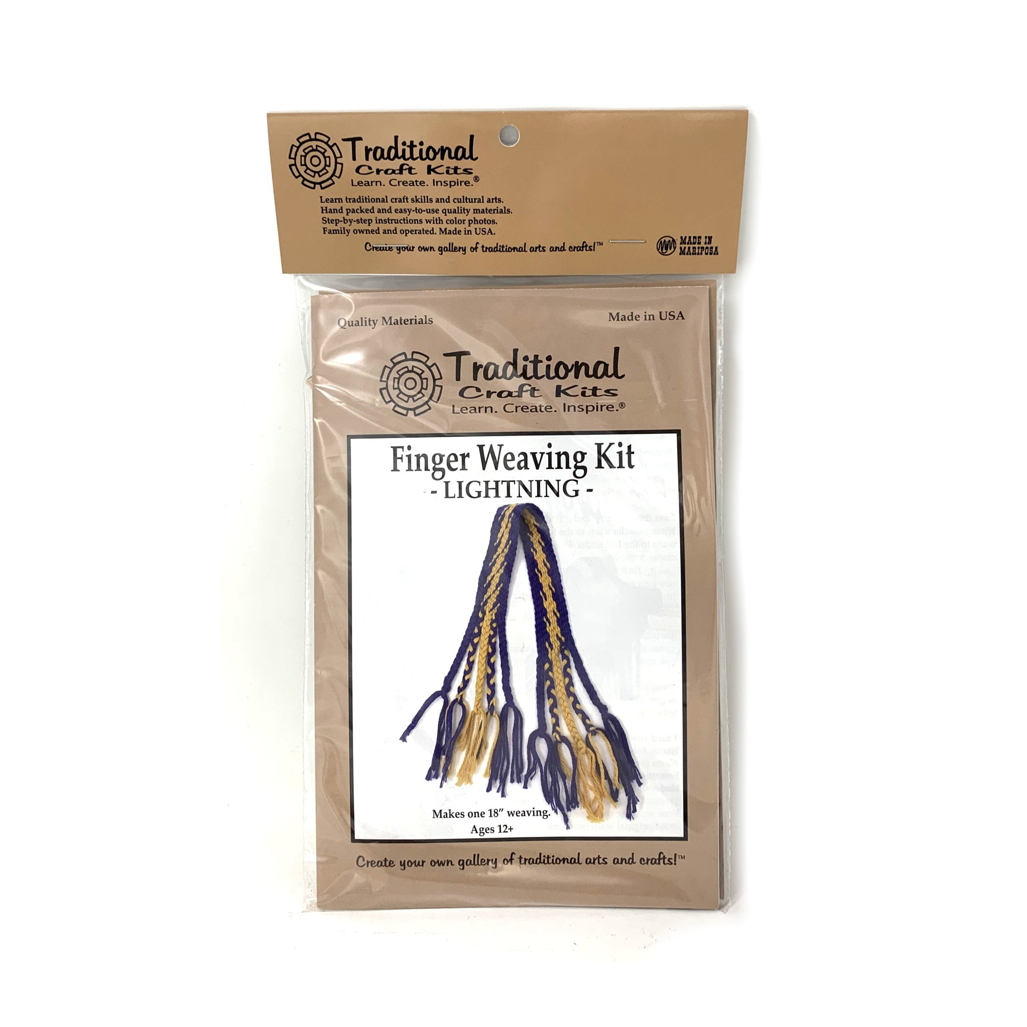 Learn the fun skill of finger weaving.Finger weaving has been done by many cultures worldwide. This kit comes with instructions and materials for making a very fine weaving.In finger weaving a vertical “warp” yarn on one side becomes a horizontal weaver “weft” yarn as it passes through the shed to create a design. Once you learn the technique of finger weaving you can make other designs, different sizes, using all kinds of yarn types and weights.