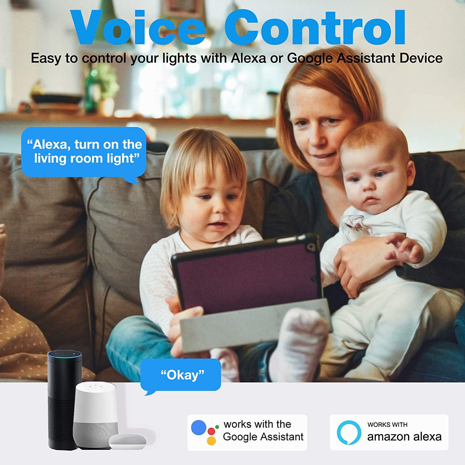 - Voice Control: Control your smart light bulbs via your voice to work with Alexa or google home. Simple voice command to turn on/off your light or adjust the brightness. Easy to install. No need subscription