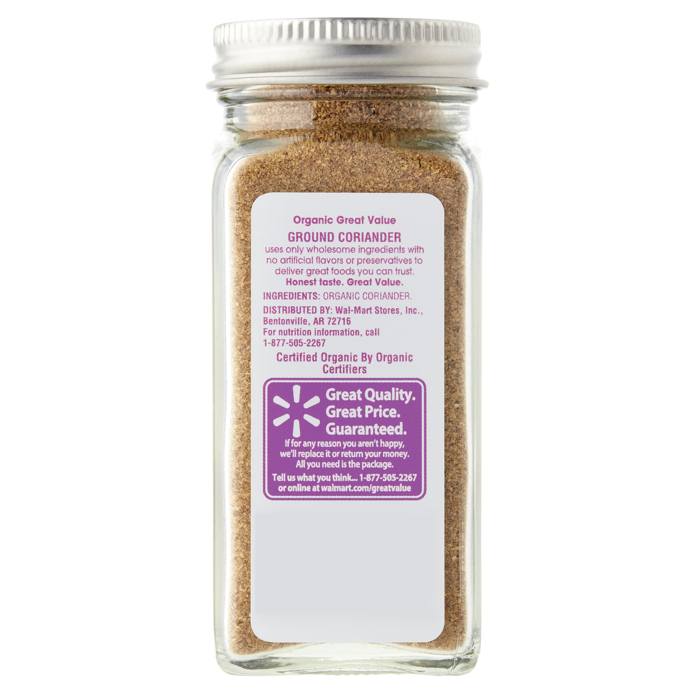 Take your recipes from mundane to marvelous with Great Value Organic Ground Coriander. This aromatic spice warms the taste buds and adds a bright and nutty flavor to your dishes. Great for both sweet and savory recipes, it makes a superb addition to curries, stews, meat dishes, and baked goods like cookies, cakes, and bread. Our USDA certified organic coriander has no artificial flavors or preservatives to deliver great food you can trust. Bring your favorite dishes up a notch with Great Value Organic Ground Coriander.