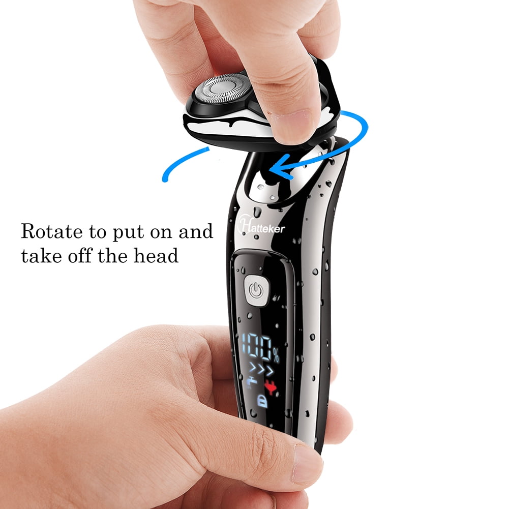 MULTIFUNCTIONAL GROOMING KIT: 3 detachable attachments including electric shaver head, trimmer head, nose trimmer head to satisfy any of your facial and body shaving, grooming needs, enjoy hair-free smooth skin without irritation Follow every contour of your face and neck 4-DIRECTION FLOATING ULTRA-ADVANCED SHAVING HEAD technology. Resulting in an extremely close, smooth shave. This trimmer is ideal for trimming and shaping sideburns, goatees, mustaches, and more,to help complete your facial hair grooming routine. SMOOTH & QUICK SHAVE: The 3D floating heads with precision blades of upgraded double-blade technique automatically adapts to the contours of the face, neck and even the jaw. Rounded edges move smoothly over skin for a protective shave.