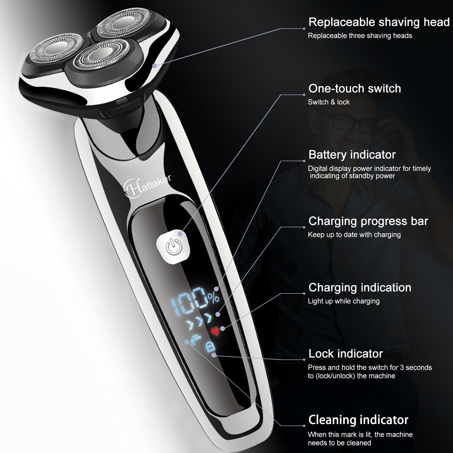 - 3 IN 1 MULTI-FUNCTIONAL Men’s electrical shaver equipped with three kinds of cutter,including a beard shaver razor and a precision hair trimmer and nose hair trimmer