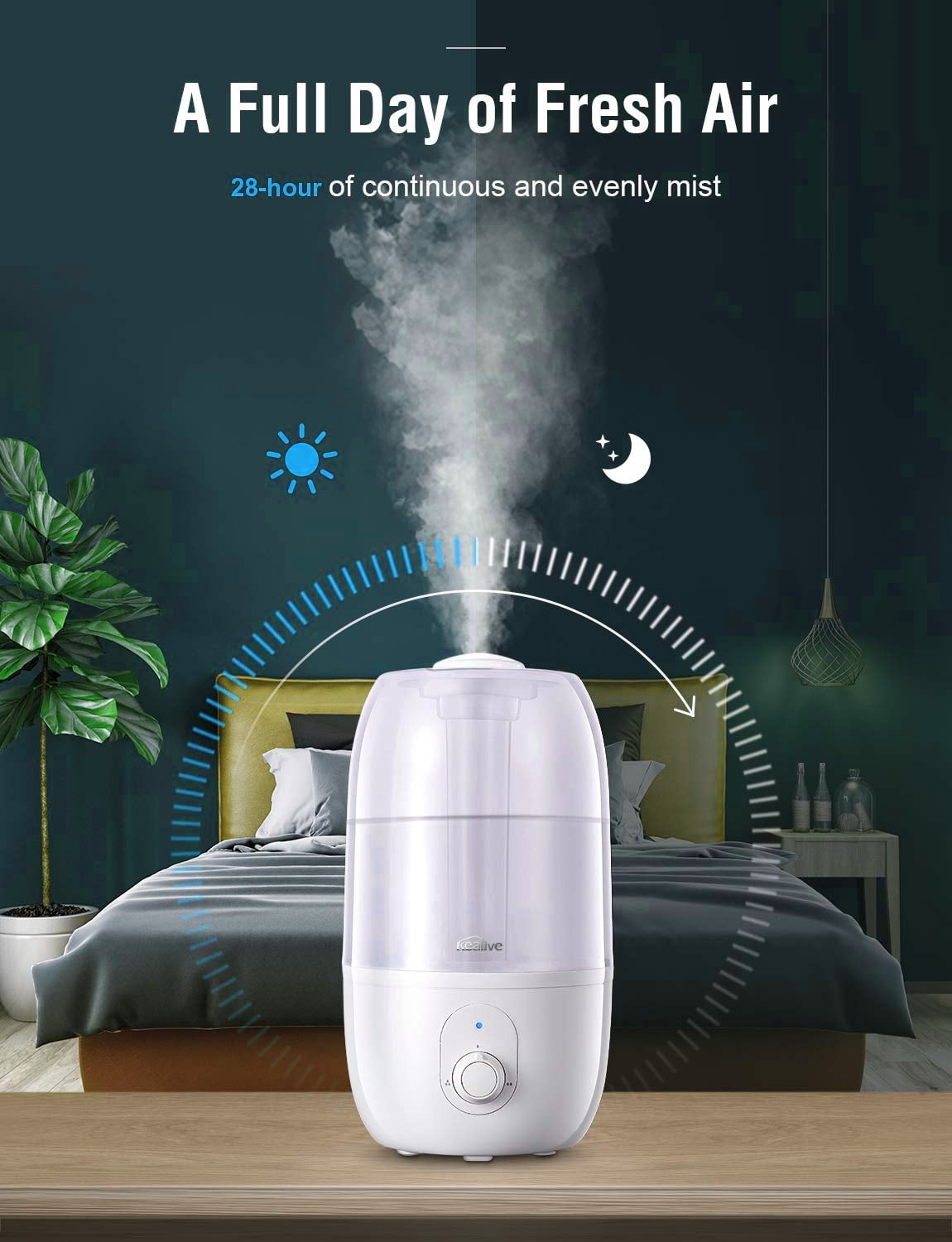 - 【Quieter Sleep Companion】Merely 28db while using, even lower than the sound of whispering. Silently moisturize the air to form an ideal environment to sleep. Relax your noise, skin and even hair for every night’s sound sleep.