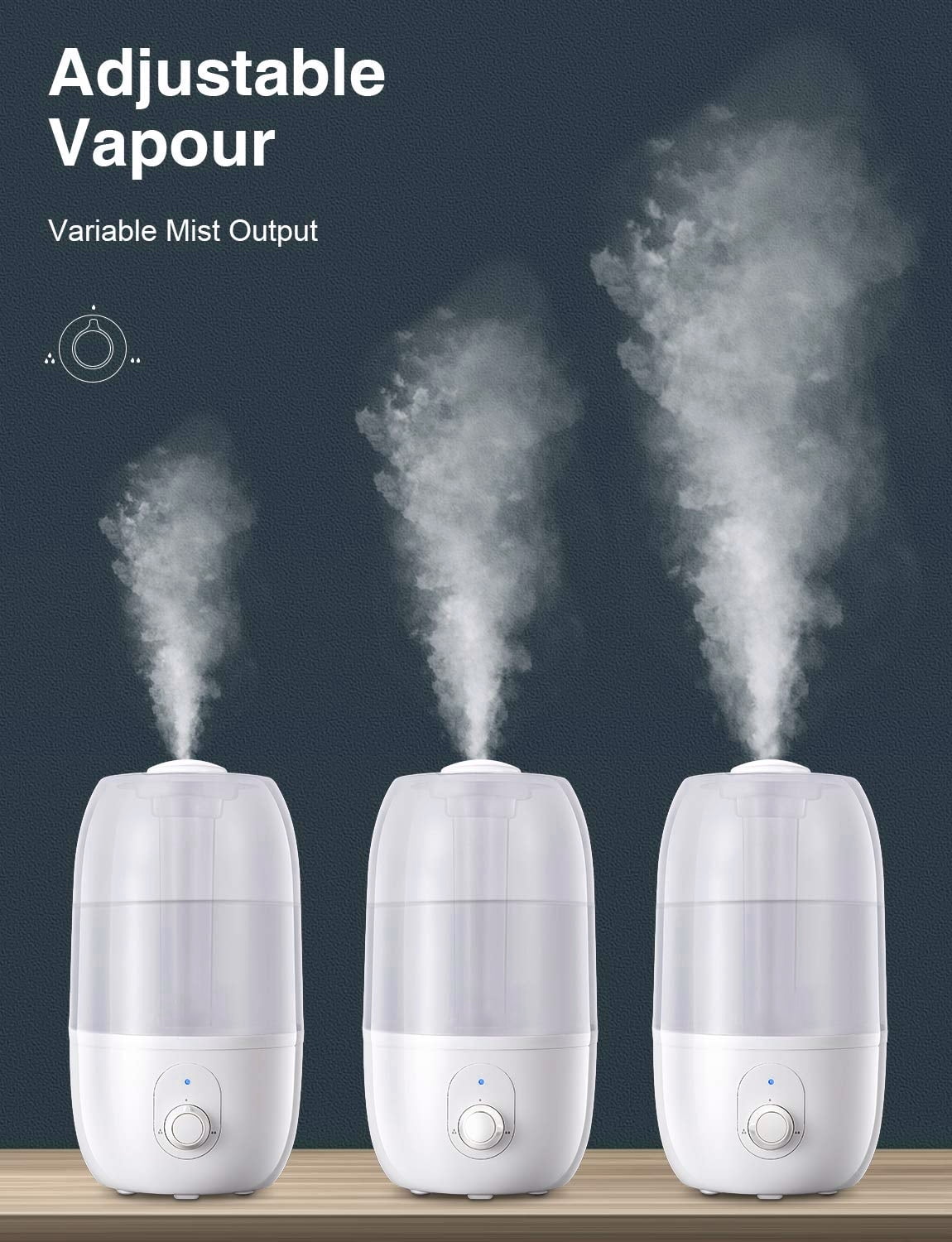 - 【30-HOUR CONTINUOUS HUMIDIFICATION】2.7L large capacity and three-level mist output allow it to work a maximum of 30 hours one time. Effortlessly enjoy ideal humidity all day long without the trouble of adding water several times. Peacefully, enjoy comfortable days and nights.