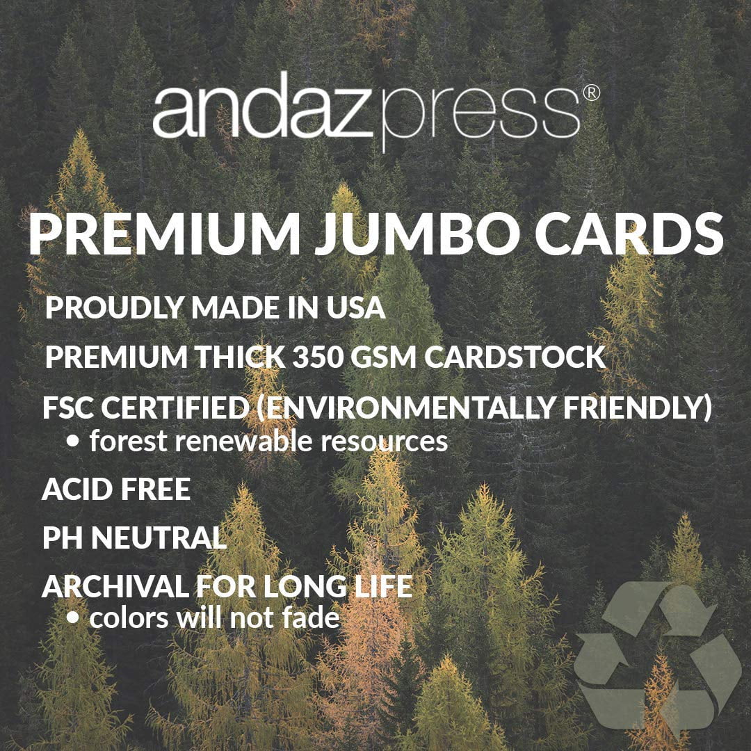 Koyal Wholesale INCLUDES. 1 individual high quality 8 1/2 x 11 inch fold over jumbo card, the card inside is blank with plenty of space to add you big birthday wishes. White envelope is also included. MATERIAL. Andaz Press jumbo cards are made of premium quality 350 GSM matte acid free paper, FSC certified, PH neutral, archival for long life and made in USA. DESIGN. Our high quality artwork design is printed on front cover. The jumbo card is blank inside providing plenty of space for personalized messages from a large group. PERFECT to brighten the day of that special someone on their birthday. Ideal for family, friends, wife, husband, best friend, sibling, co-workers, staff, employees or boss. Made in USA