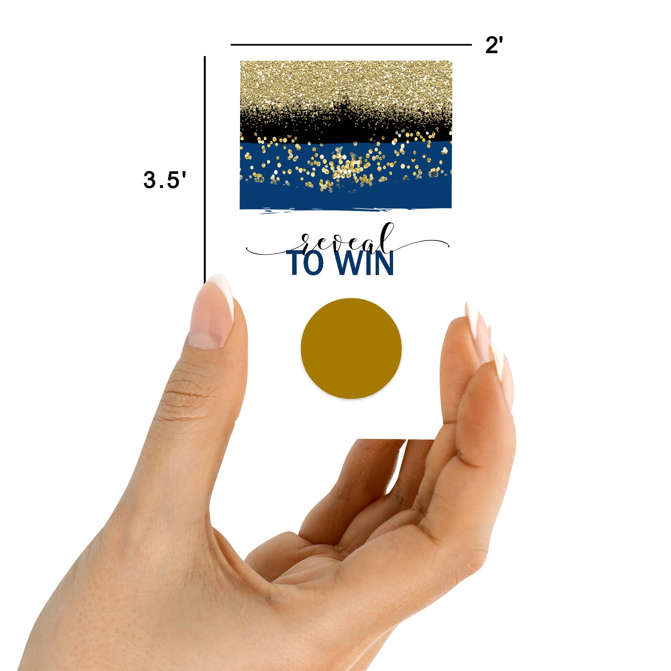 - Navy and Gold Scratch Off Game: PACK OF 28 Cards Total – 25 "Losing" + 3 "Winning" cards. Bonus – Winners bagged separate from losing cards – Quickly know how many prizes you want to have on hand for your special event.