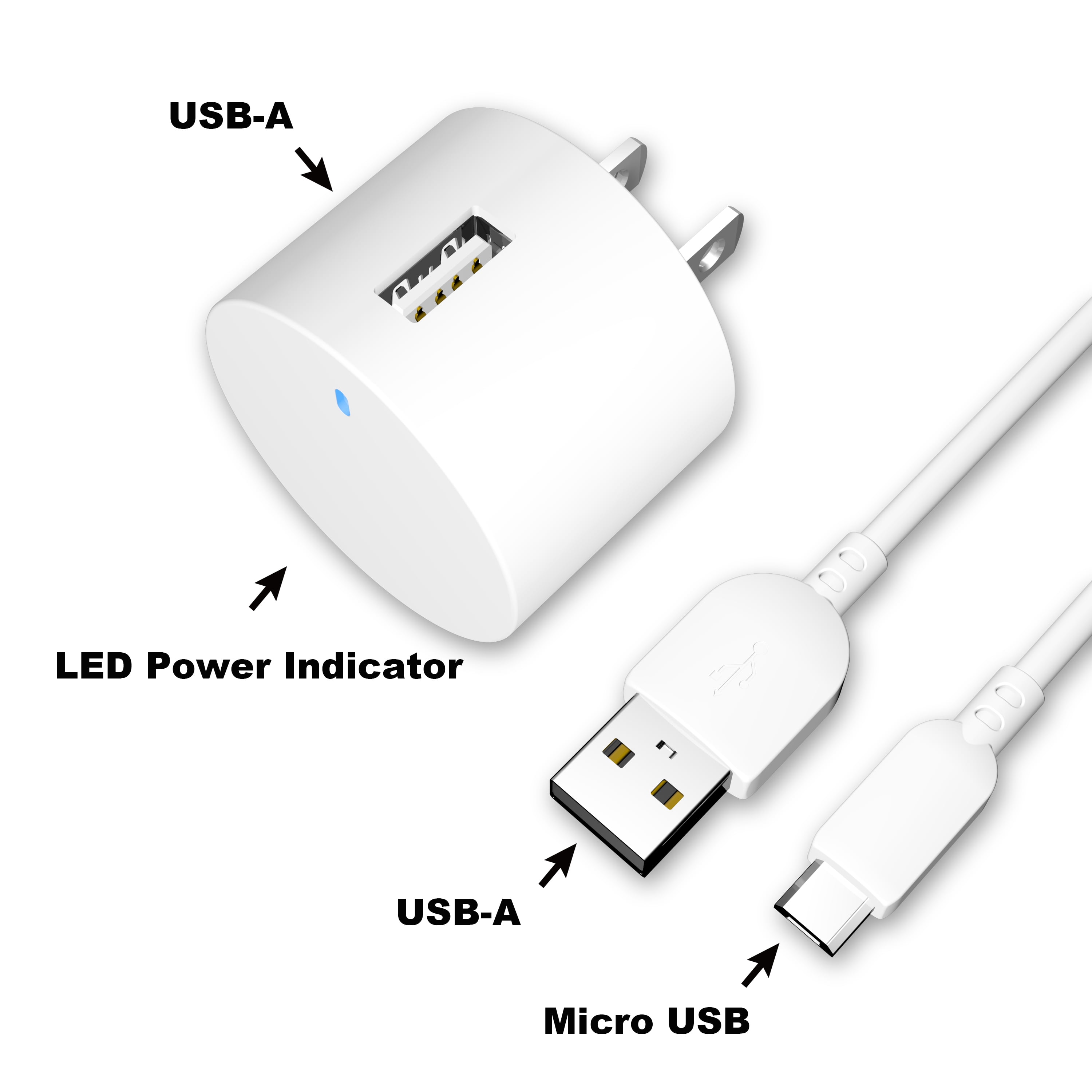 - What’s in the box? 1 USB Wall Charger and 1 Micro-USB to USB Cable 3 ft (91.4 cm)