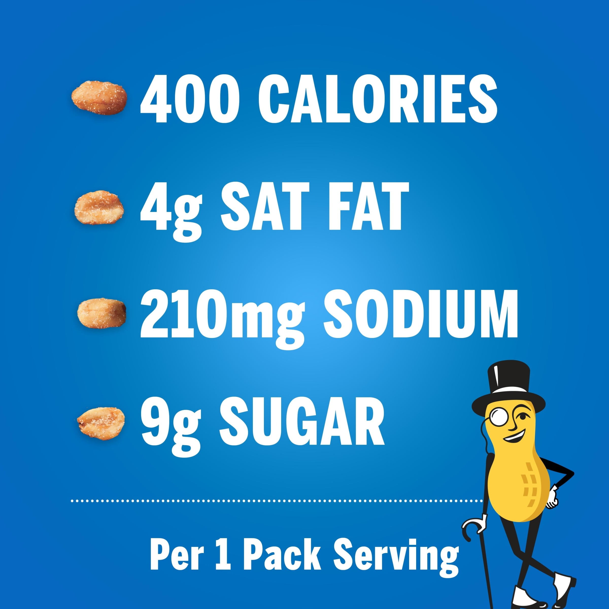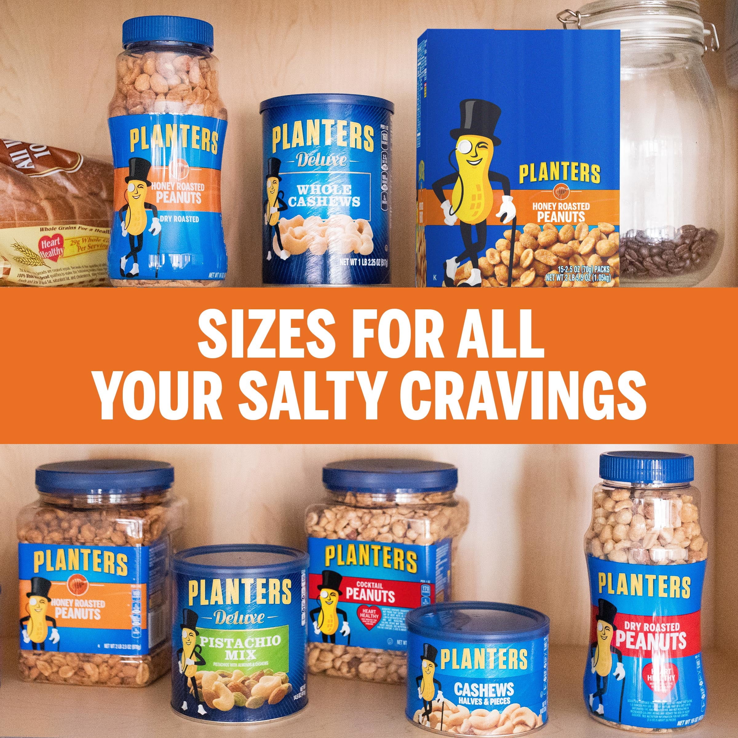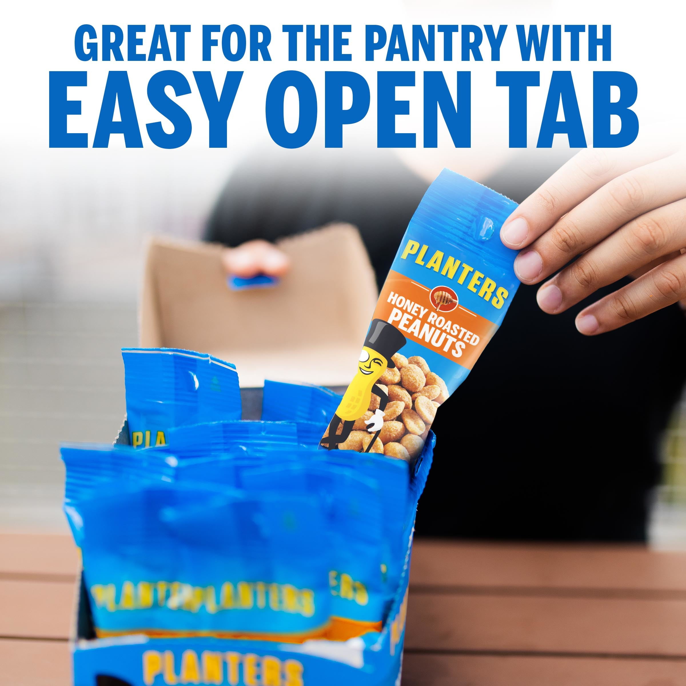 Golden honey roasted peanuts with a delicate sweet flavor, seasoned with sea salt. This 15 count box of Planters Golden Honey Roasted peanuts are great for snacking on-the-go with easy to handle 2.5 ounce packs for easier access. Enjoy individually sealed packs of sweet nuts with a salty edge.