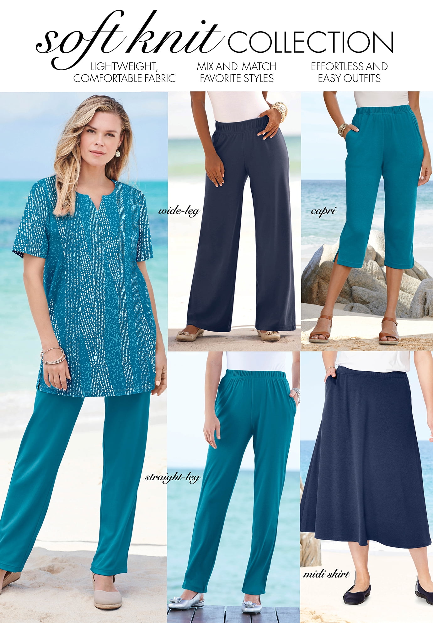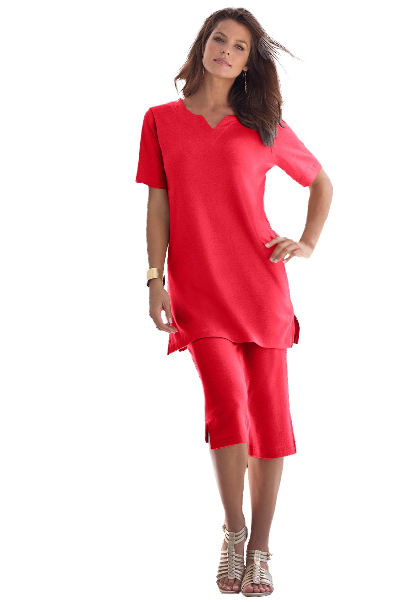 Roaman’s Women’s Plus Size Soft Knit Capri Pant Pull On Elastic Waist.A kicky style in a best-selling fabric you’re sure to love. Side slits at hem. Comfy, casual and everything easy, Soft Knits make effortless outfits every time. The relaxed fit and pull-on design make them perfect for everyday wear. Elasticized waistband and side pockets. Regular: 18” inseamPetite: 17” inseamCotton/polyMachine washImported. ABOUT THE BRAND: Roaman’s is known for our fashionable plus size clothing. We’ve made it our goal to provide clothing for plus size women that doesn’t scream “plus size” but matches the fun styles of current fashion trends instead. Roaman’s creates women’s plus fashion that is flattering, feminine, and unique. Roaman’s is the perfect blend of fashion, fit and comfort, all made expressly for curves.