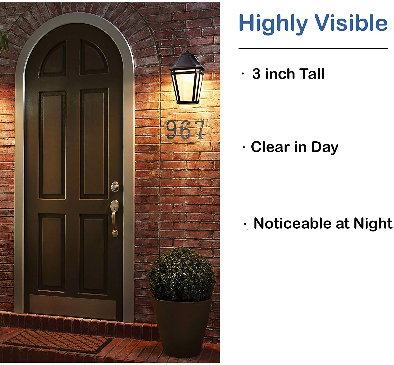 CLEAR & VISIBLE – The dark color of our metal house number makes it easy to see in various weathers during day and night. In addition, the 3 inch height of the house number decal is the right size for delivery drivers and postal services to see from afar.