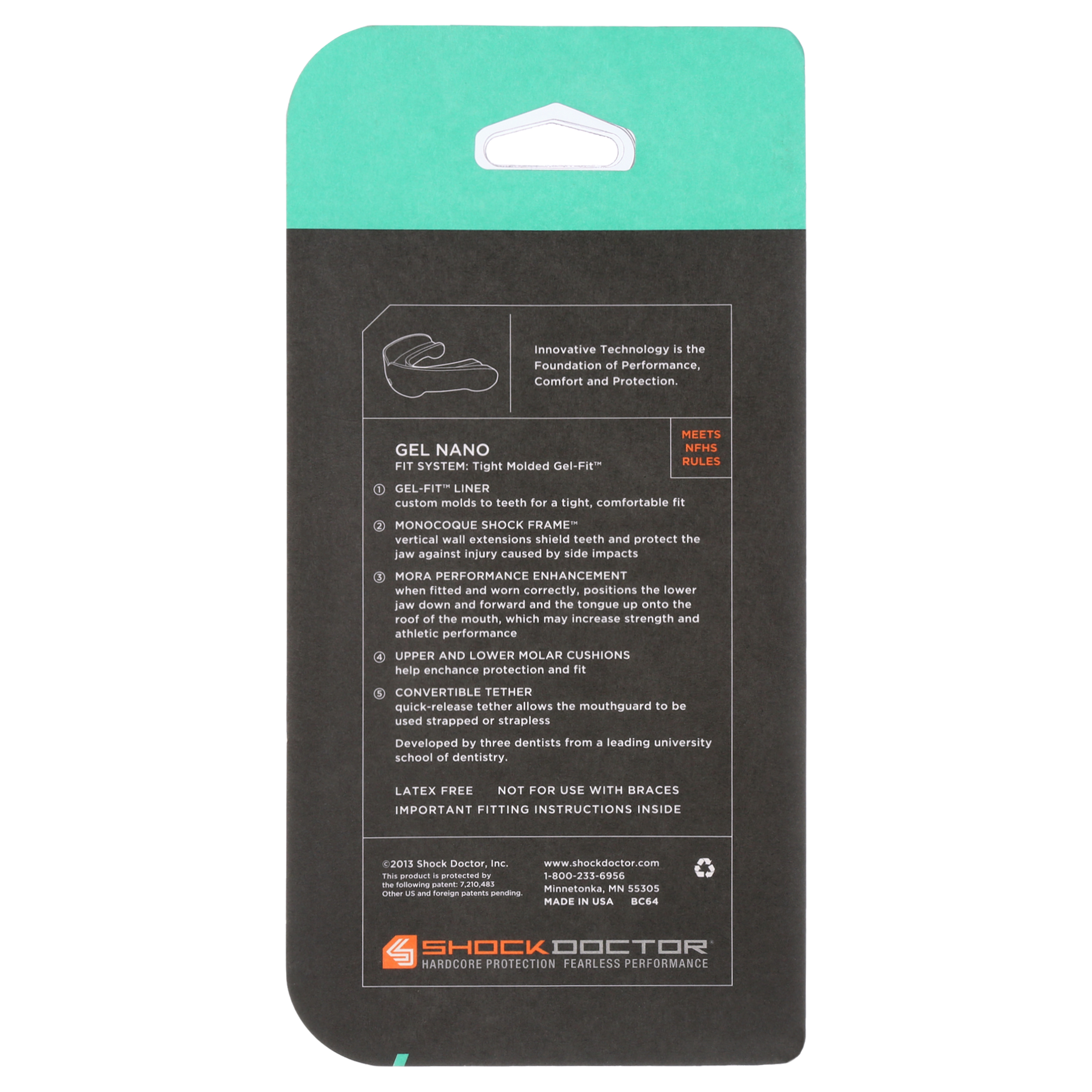 The Gel Nano offers comfort and protection in a low profile design and an array of colors, printed designs and flavors. Fully equipped with an innovative gel-fit liner and vertical wall frame, the jaw line is secured, limiting injury from side impact.