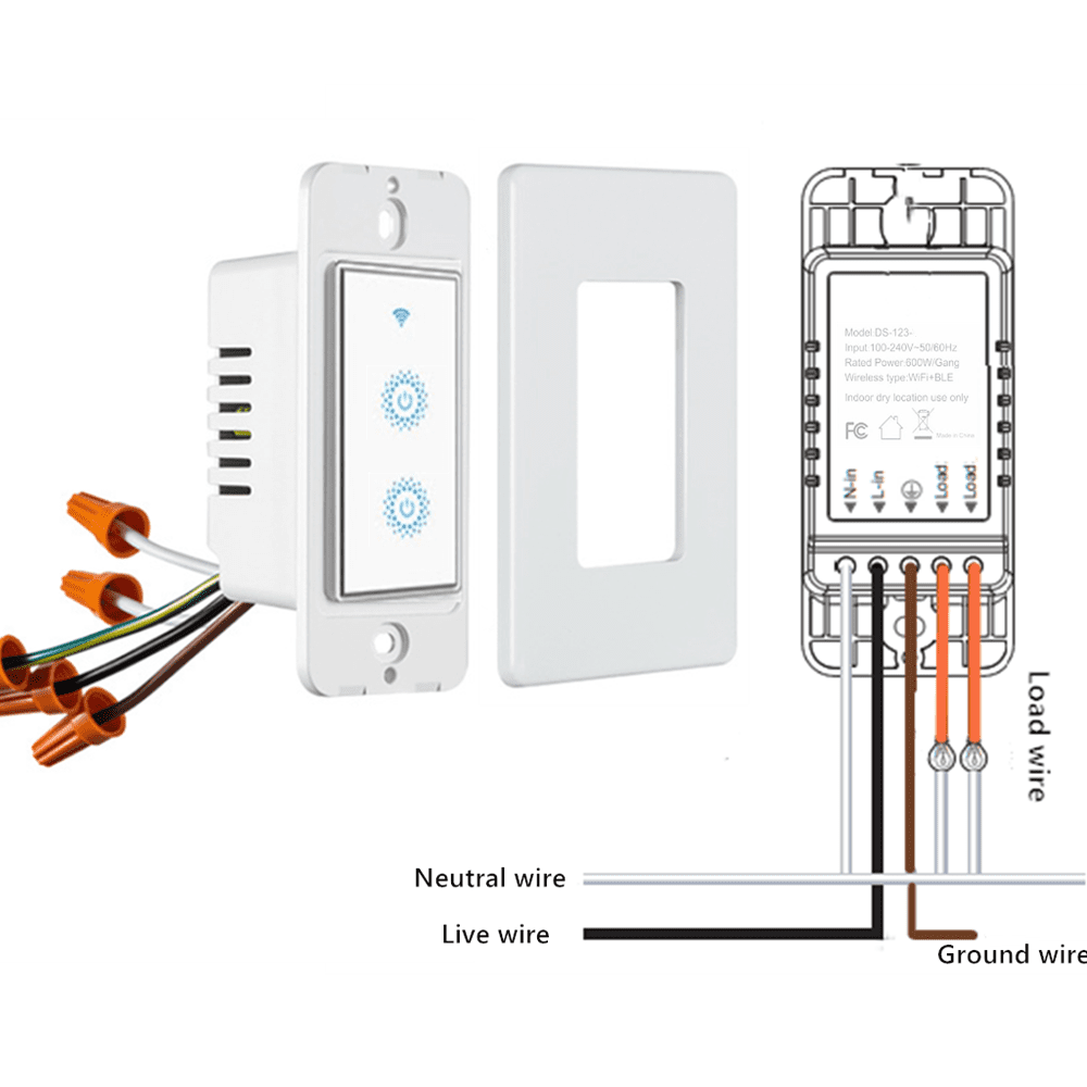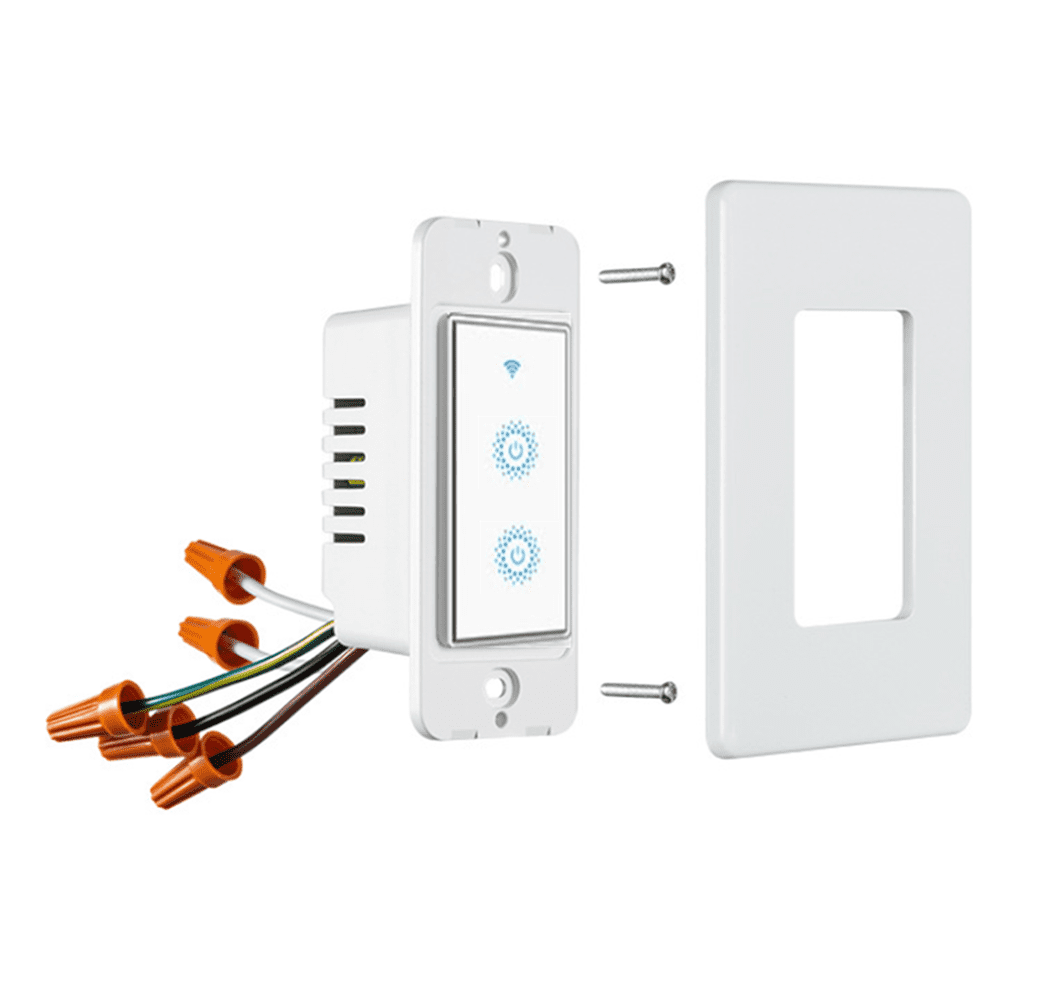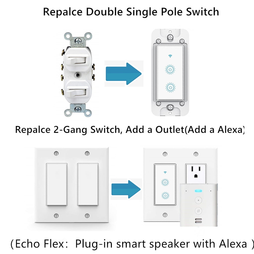 Smart Wi-Fi Double Light Switch, 2 individual Single Pole Switch, 2 in 1 Wireless Smartphone Remote Control Wall Light & Fan Switch, Compatible with Alexa Google Assistant & IFTTT Remote Control