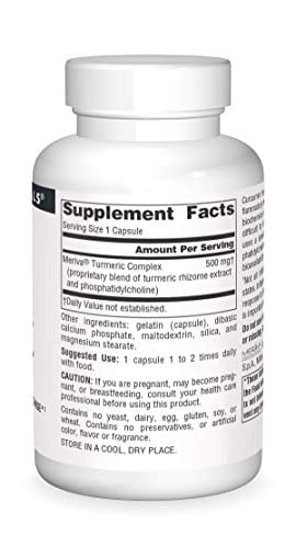 Source Naturals – Meriva Turmeric Complex 500 mg. – 60 Capsules Source Naturals Meriva Turmeric Complex uses a specialized extract combined with phosphatidylcholine to help generate greater curcumin bioactivity than common turmeric extracts, because curcumin is difficult to absorb. Curcumin from turmeric supports the healthy inflammatory response through an array of complex biochemicalSource Naturals – Meriva Turmeric Complex 500 mg. – 60 Capsules Source Naturals Meriva Turmeric Complex uses a specialized extract combined with phosphatidylcholine to help generate greater curcumin bioactivity than common turmeric extracts, because curcumin is difficult to absorb. Curcumin from turmeric supports the healthy inflammatory response through an array of complex biochemical mechanisms. Source Naturals Meriva Turmeric Complex addresses the following body systems Cells/DNA