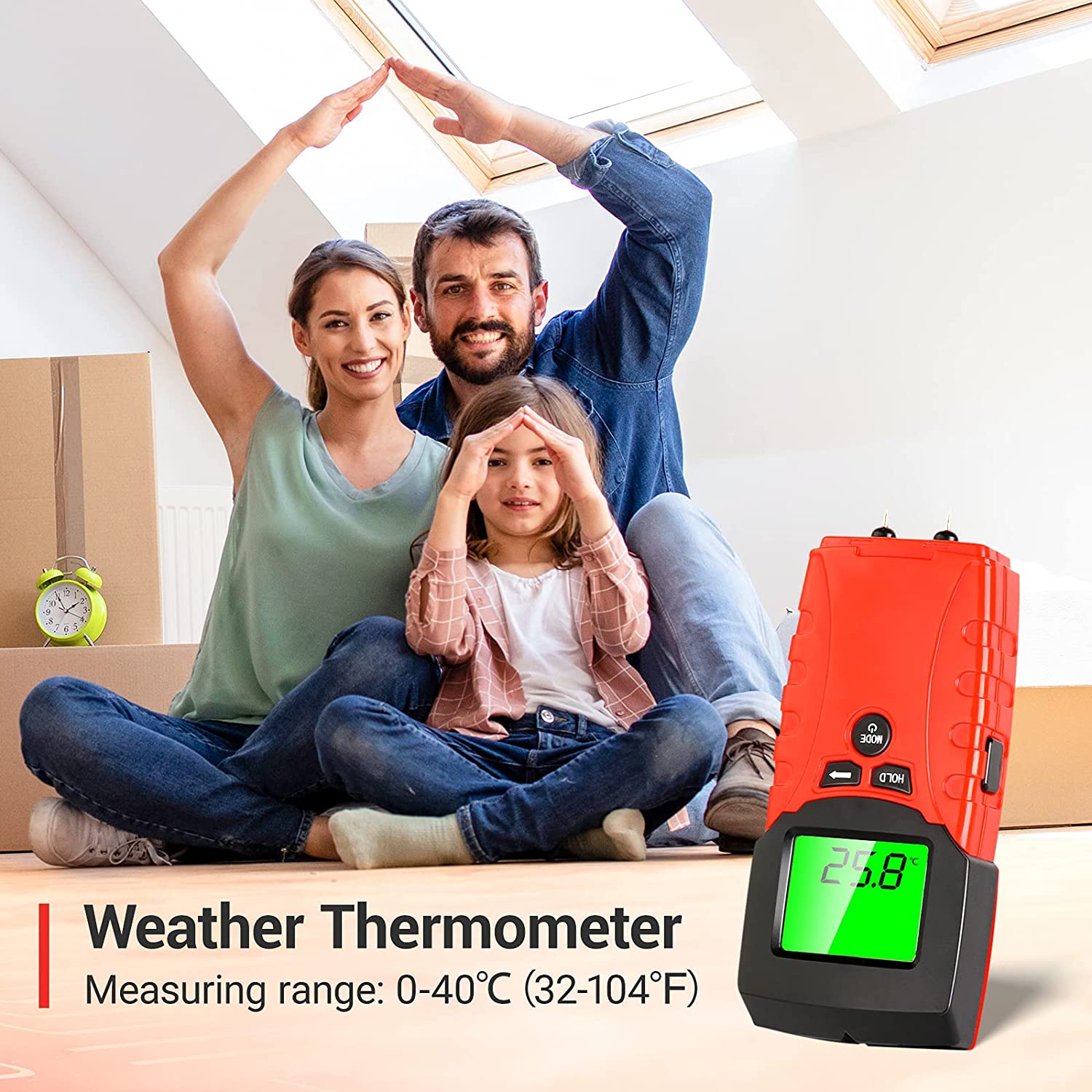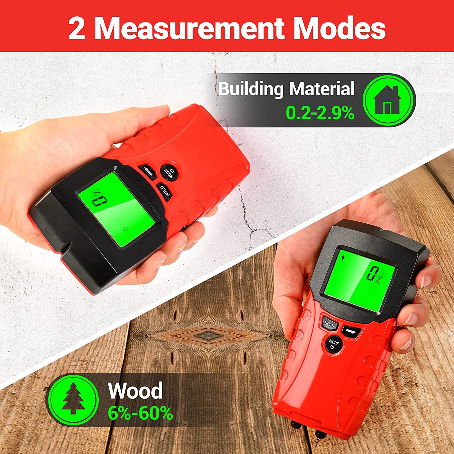 - 【Moisture Meter Function】Designed for moisture testing of wood and building materials, with 2 pins to help penetrate the test surface and quickly understand the moisture content in the wall. Let you to quickly find hidden water leaks on walls and surfaces, wide measuring range(Wood: 6%-60%, Building materials: 0.2-2.9%).
