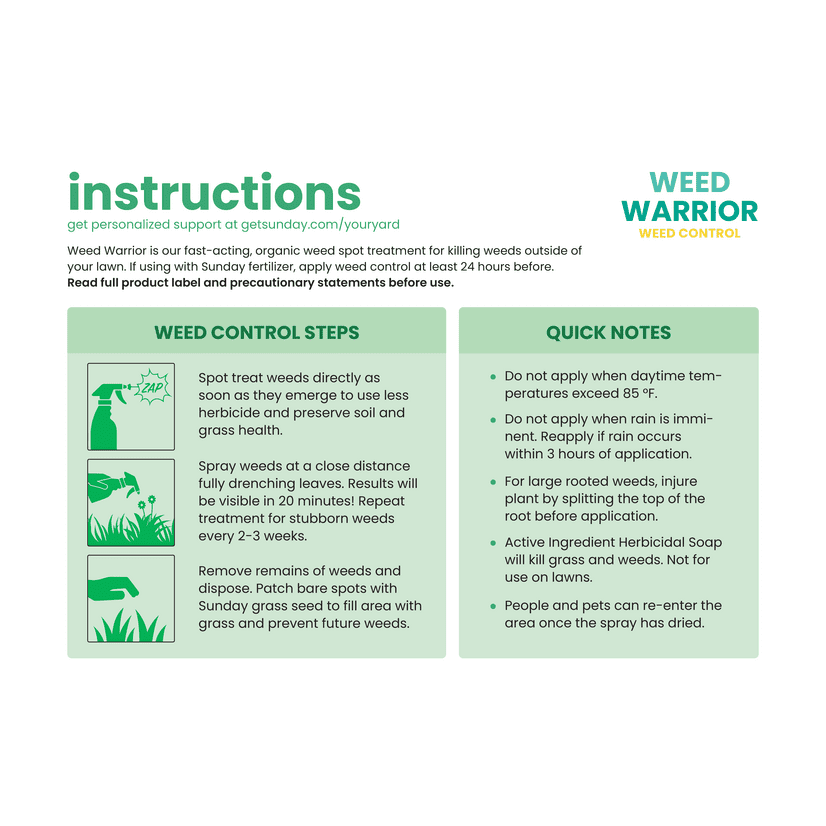 Easy. Effective. And fast as all get out. Our weed and grass killer is a key component of your herbicide arsenal—and it gets the job done without any harsh chemicals! OMRI-listed for organic gardening, it’s powered by herbicidal soap, which dehydrates weeds, mosses, grasses, and algaes on the spot. Notice we said “grasses”? That includes good grasses, like your turf, so you don’t want to use this on your lawn. It’s ideal for pesky weeds that pop up in sidewalk cracks, mulched areas, asphalt, gardens, and more. Just point, shoot, and watch it wilt.