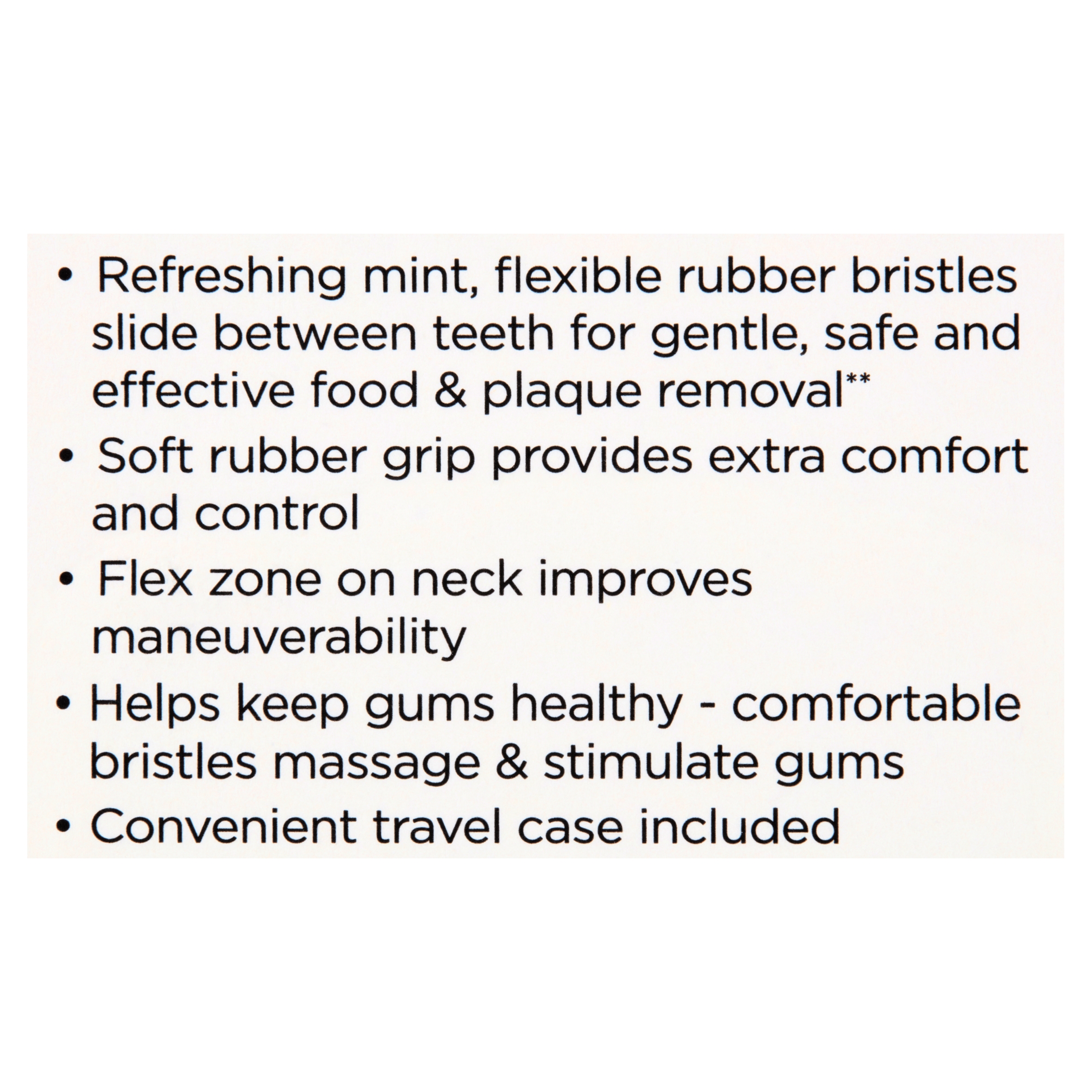 • Refreshing mint, flexible rubber bristles slide between teeth for gentle, safe and effective food & plaque removal**