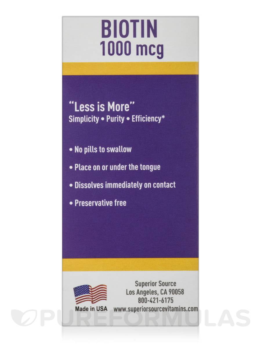 Biotin 1 000mcg by Superior Source 100 Sublingual Tablet Biotin 1 000mcg Supplement Facts Serving Size 1 Instant Dissolve Micro-tablet Servings Per Container 100 Amount Per Serving Daily Value Biotin 1 000 mcg 1 665 Percent Daily Values are based on a 2 000 calorie diet Other Ingredients Lactose (milk) Acacia Gum Warnings Keep out of reach of children. As with all dietary supplements consult your healthcare professional before use. See product label for more information.