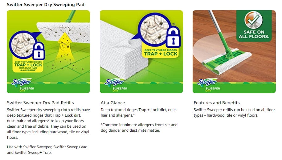 - Use with Swiffer Sweeper, Swiffer Sweep+Vac and Swiffer Sweep+ Trap