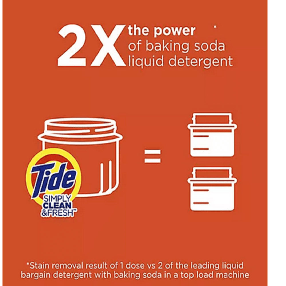 Tough on odors, easy on your wallet 2x the power of baking soda laundry detergent* Cleans fabrics in just 1 wash with no pre-treating required With a more concentrated formula, you get more cleaning agents and less water in every drop