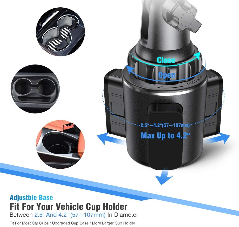 - Upgraded Wider Expandable Base– The upgraded adjustable base can be extended from 2.4" to 4.0" to fit all car cup holders. Meanwhile, with the soft anti-skid silicone pads and durable & highly material, the cup phone holder will be securely locked in your cup holder. Never fall off and broke. Protect your devices from damage.