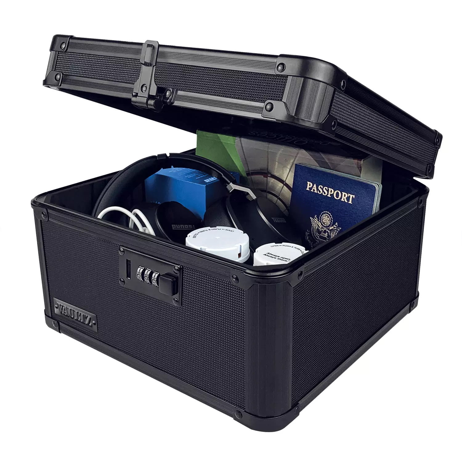 Vaultz offers a wide range of fashionable security storage products that allow you to store, transport, and protect the things that are important to you. The Vaultz All Purpose Storage Box is great for the general storage of valuables and personal items. It features a combination lock which provides the freedom of keyless security. It is constructed with reinforced corners and trim to deliver superior strength and durability. The lockbox’s stylish tactical black design and convenient size make it the ideal place for wallets, cash, passports, birth certificates, medications, and other valuables. For the office, home or school, there is a Vaultz product for you. Measures 10" L x 9.5" W x 6" H, weighs 2.2 pounds