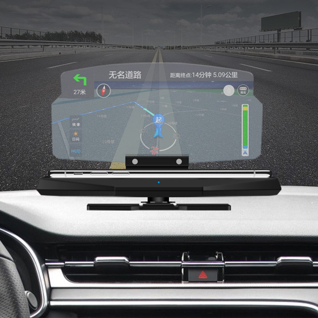 - ✈Work as a car phone holder with Wireless Charging FUNCTION: Support wireless charging to all Qi compatible devices. The head up display is amazingly designed as a car phone holder. The image reflector has two slits, and the phone can be placed erectly in the Slit which can hold the phone steadily