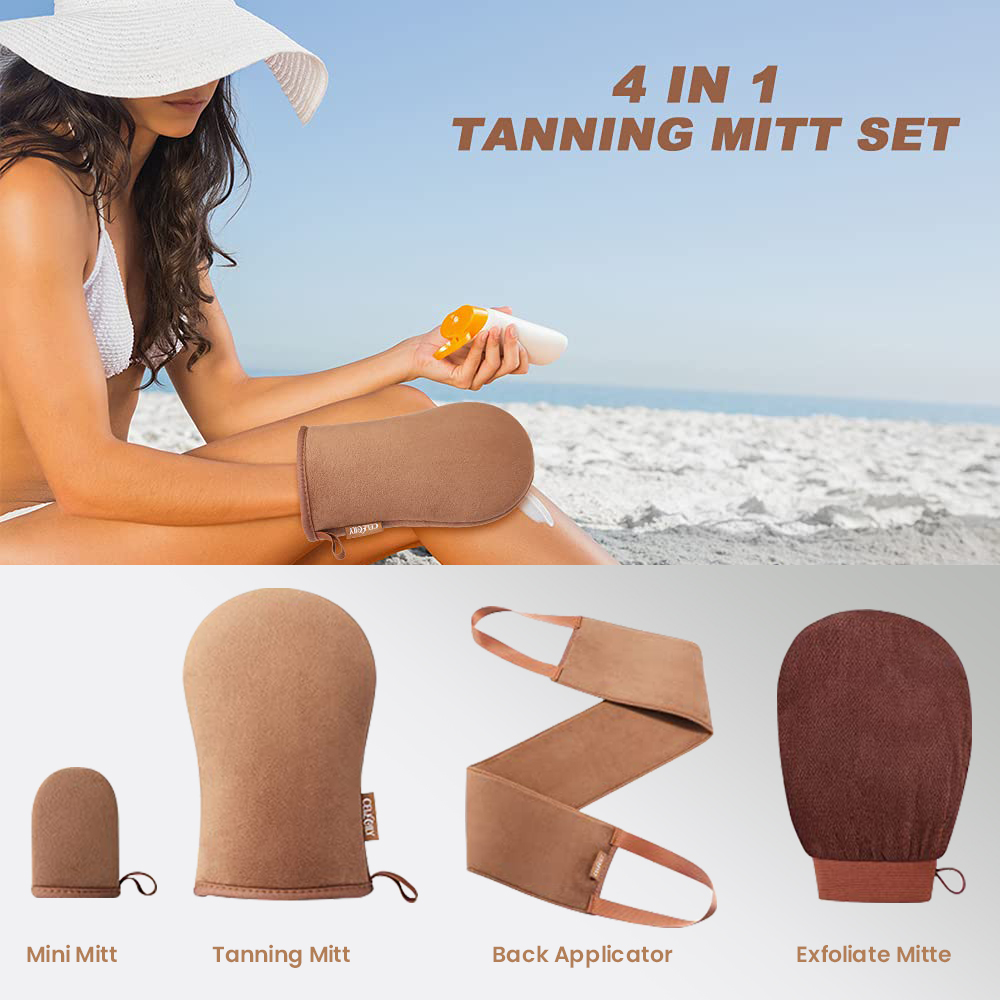 Self Tanning Mitt Set – Fake Tan Mitt with Self Tan Mitt, Face Velvet Tanning Mitt, Lotion Applicator for Back, Exfoliate Tanning Glove, Tanning Mitten, Fake Tan Mit for Lotion(4pcs)