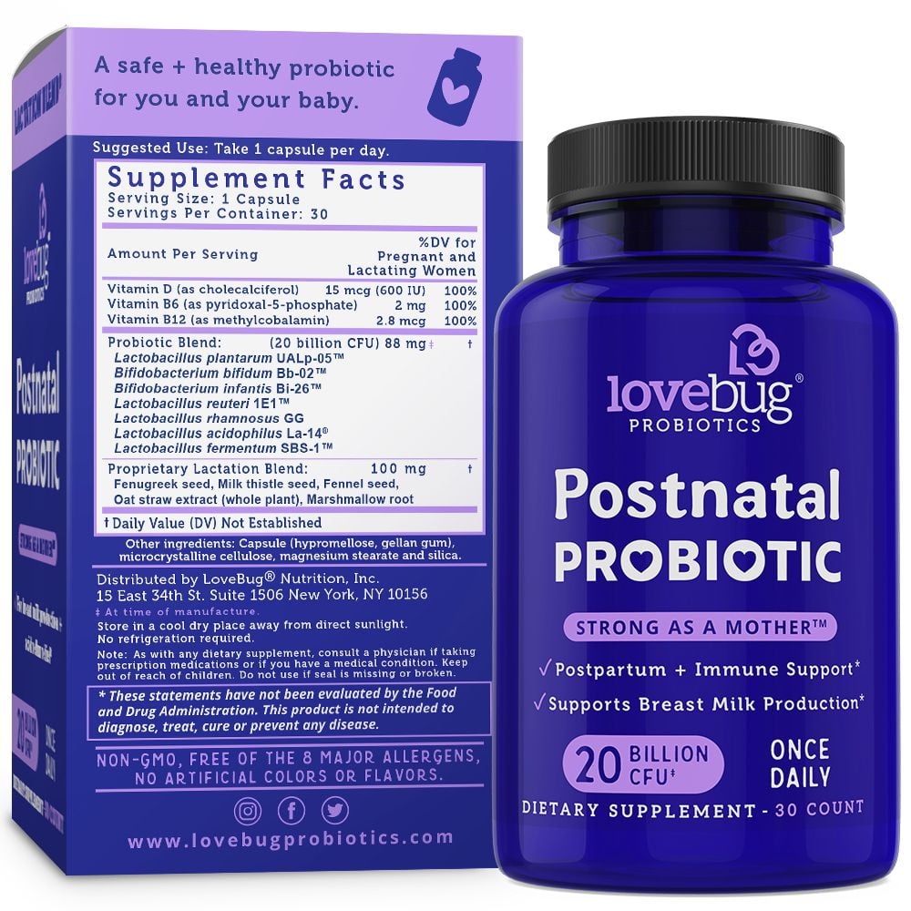 LoveBug Probiotics Labor of Love Postnatal Probiotics, 30 Capsules