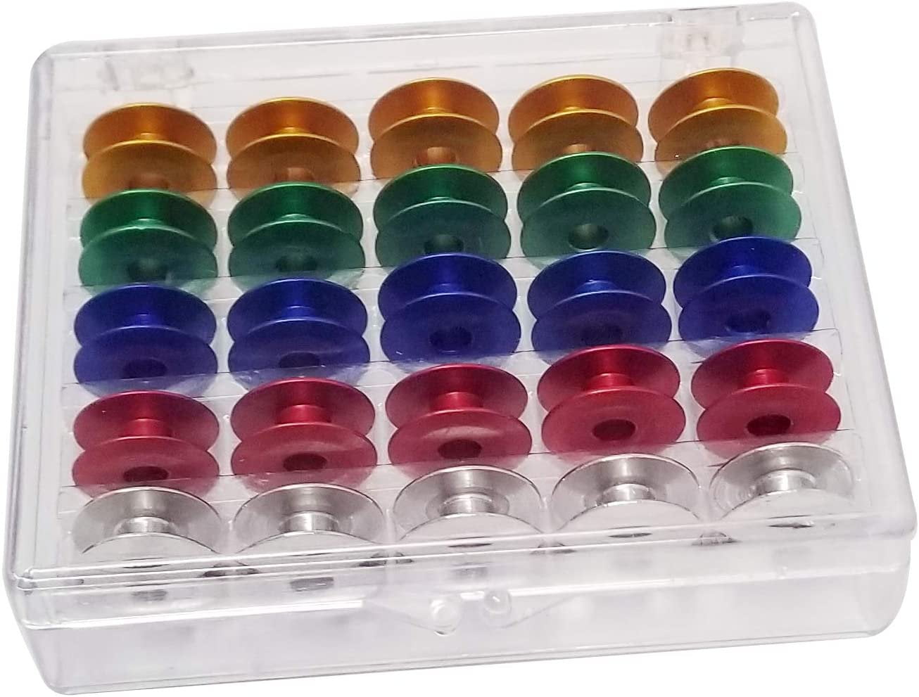 Sewtco Colorful Aluminium Bobbins for Industrial Sewing Machines – Compatible with Juki ddl 8700 Straight Stitch Sewing Machine Singer Brother Consew – 5 Each of Red, White, Blue, Green, Yellow