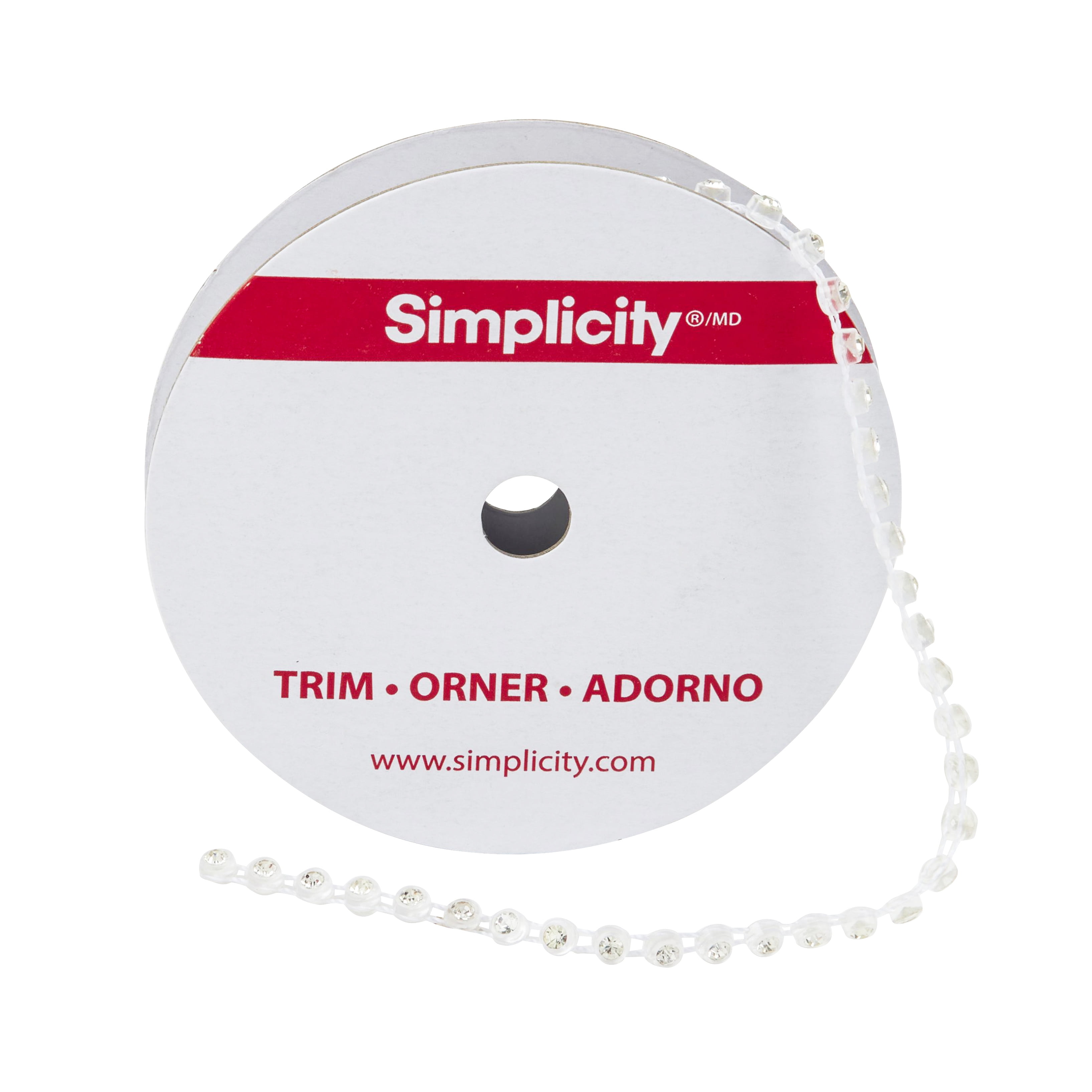Simplicity Trim, White 1/8 inch Clear Rhinestone Strand Trim Great for Apparel, Home Decorating, and Crafts, 1 Yard, 1 Each