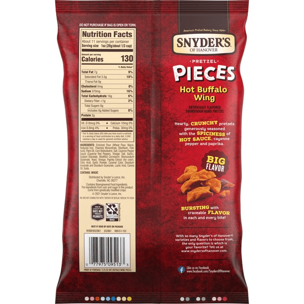 Snyder’s of Hanover Hot Buffalo Wing Flavored Pretzel Pieces, 4-Pack 11.25 oz. Bags