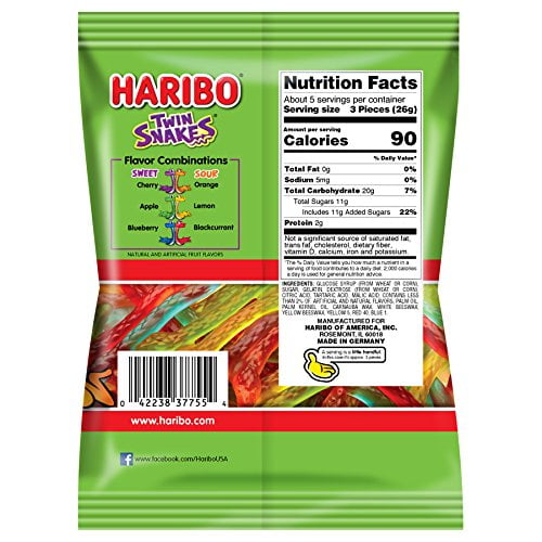 Gummi Candy, Twin Snakes Sweet & Sour, 5 Oz. Bag (Pack Of 12)