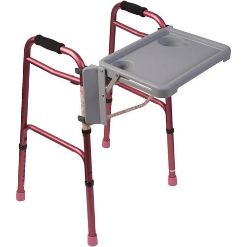 DMI Folding Walker Tray with Cup Holders, Tool Free, Locks in Place, Gray, 18.5 Inches