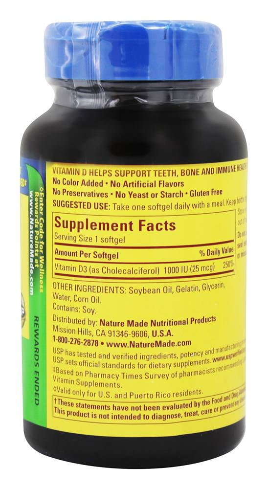 Nature Made Vitamin D3 1000 IU (25 mcg) Softgels, 180 Count Value Size