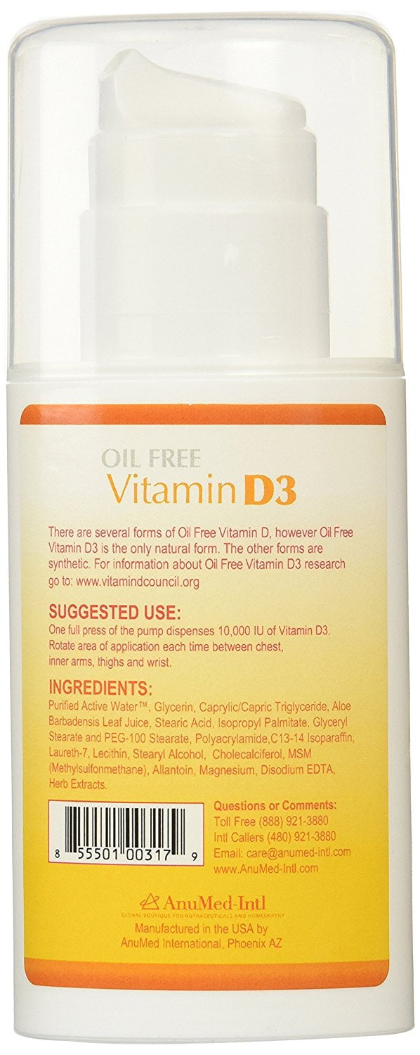 AnuMed Oil Free Vitamin D3 Cream, 3 Oz