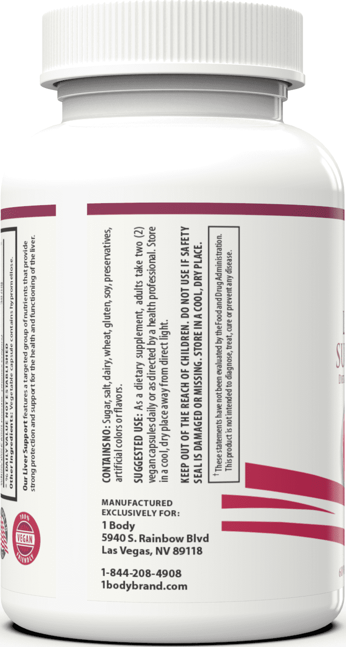 1 Body Liver Cleanse & Support Supplement Milk Thistle Extract 60 Vegan Capsules