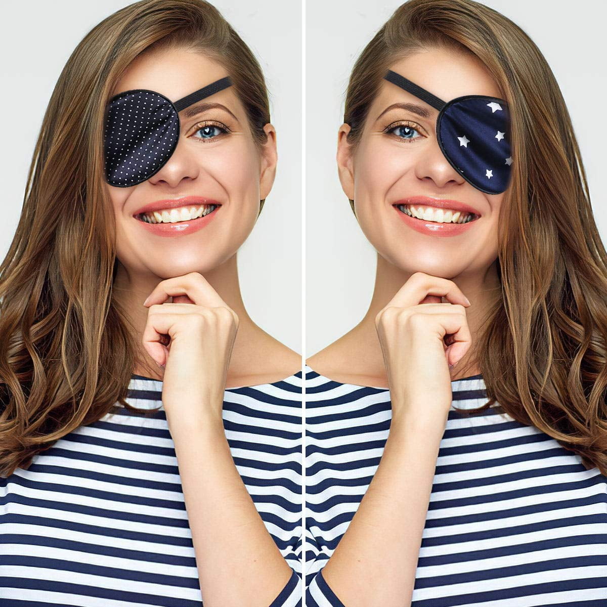 eZAKKA Eye Patches for Adults Kids, 2 Pieces Silk Elastic Lazy Eye Patches for Amblyopia Strabismus (L, Blue with Star+Black Polka Dots)