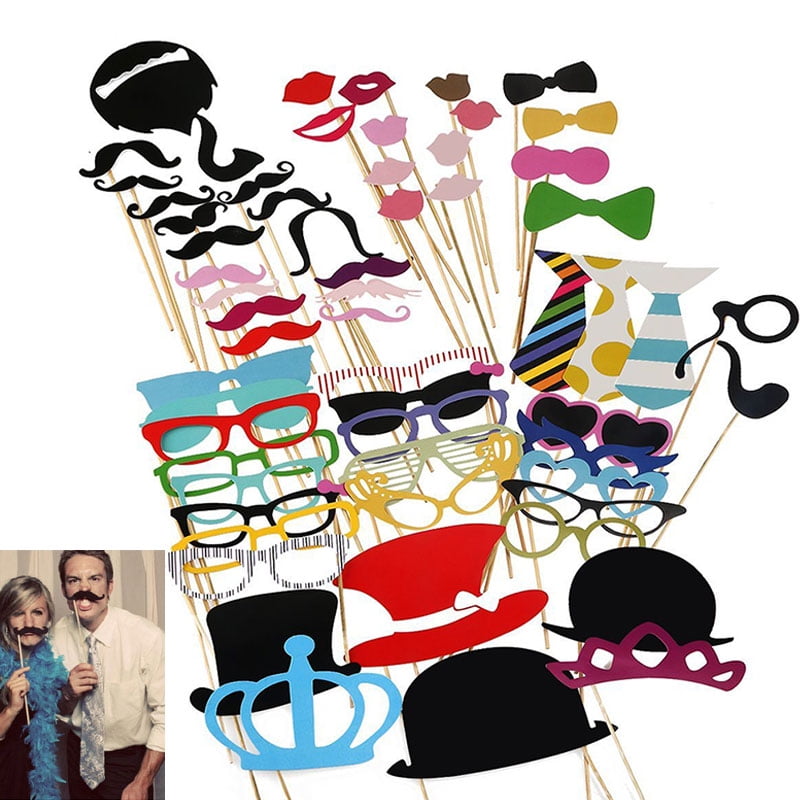 60Pcs/Set Photo Booth Props Party Masks Hat Mustache Lip Wedding Party Decor Birthday Favor Supplies