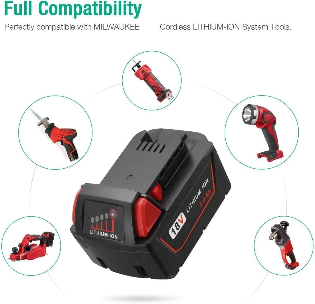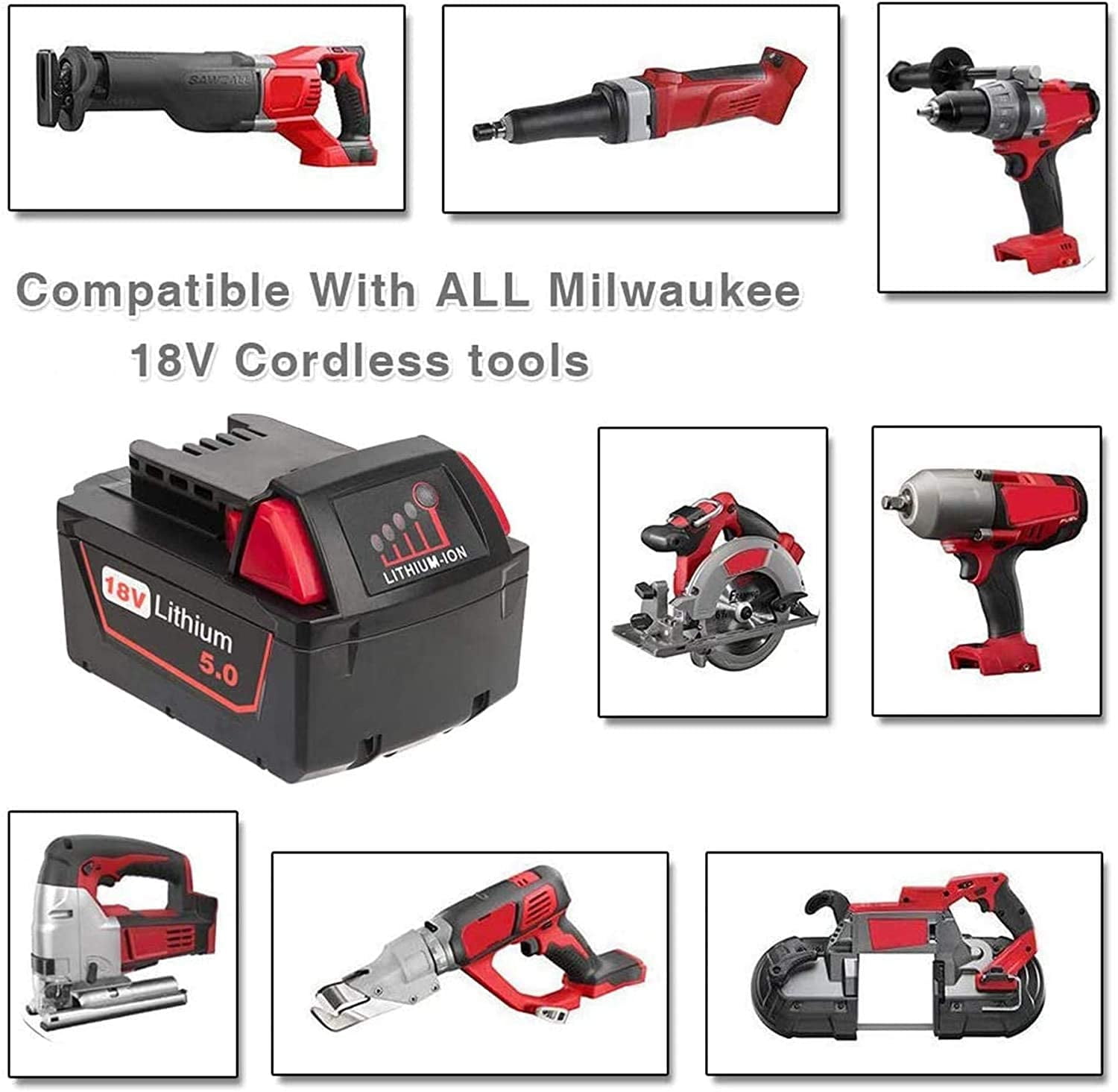 - 【Specification】Battery Type: Lithium-Ion Voltage:18V Capacity: 5000mAh,100% Brand new 6000mAh Rechargeable Battery ;Great energy density and long cycle life for Milwaukee Replacement Battery.
