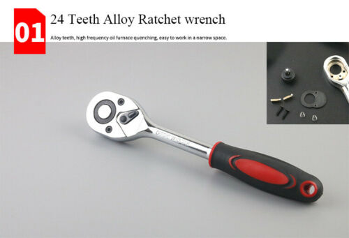 46PCS Socket Spanner Tool Kit Ratchet Wrench Set METRIC/SAE 1/4′ Drive w/Case