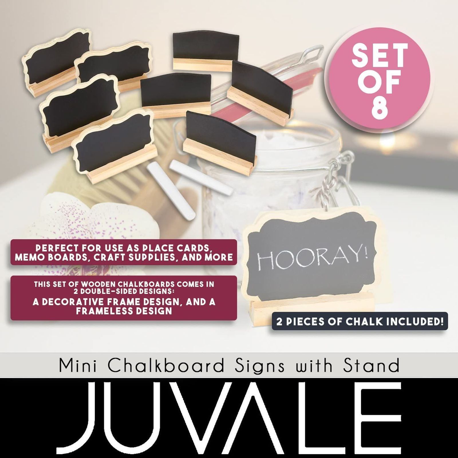 - What’s Included: Juvale’s set includes 8 chalkboard label tags and 2 sticks of white chalk