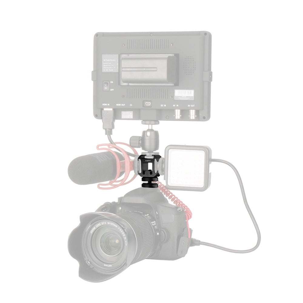 - 3 cold shoe mount adapter allows you to add a variety of devices at will, such as microphone, LED video light, monitor and so on. Small devices can create unlimited imagination for your photography.
